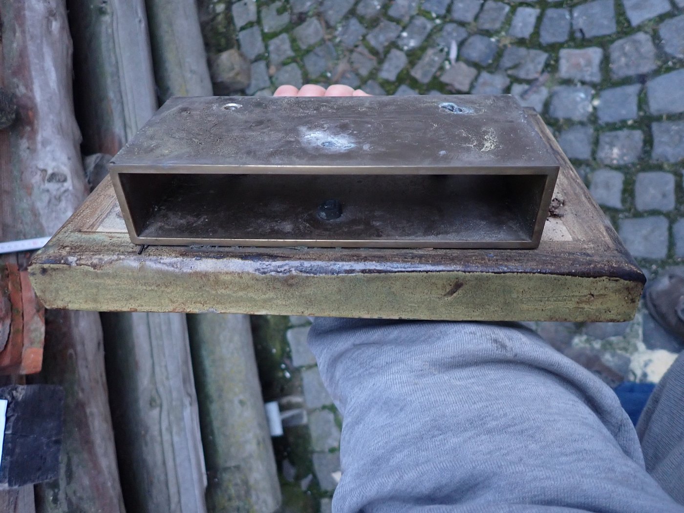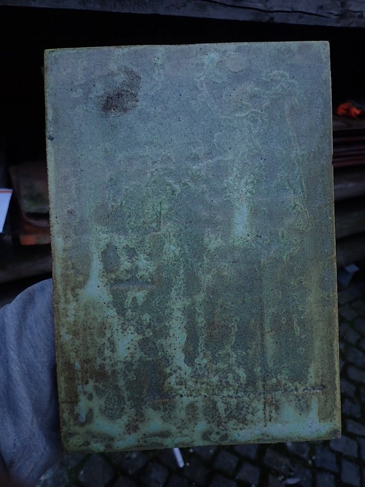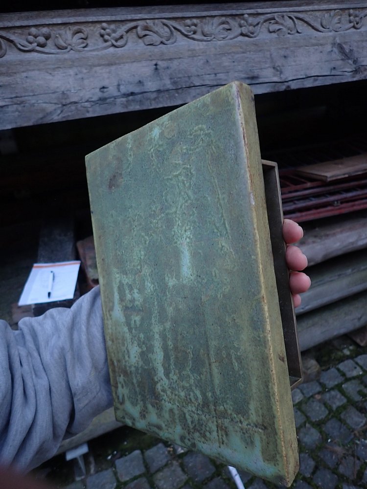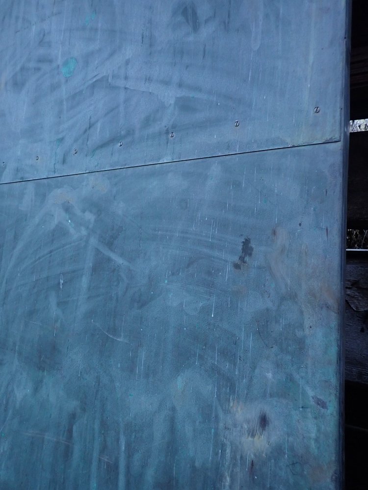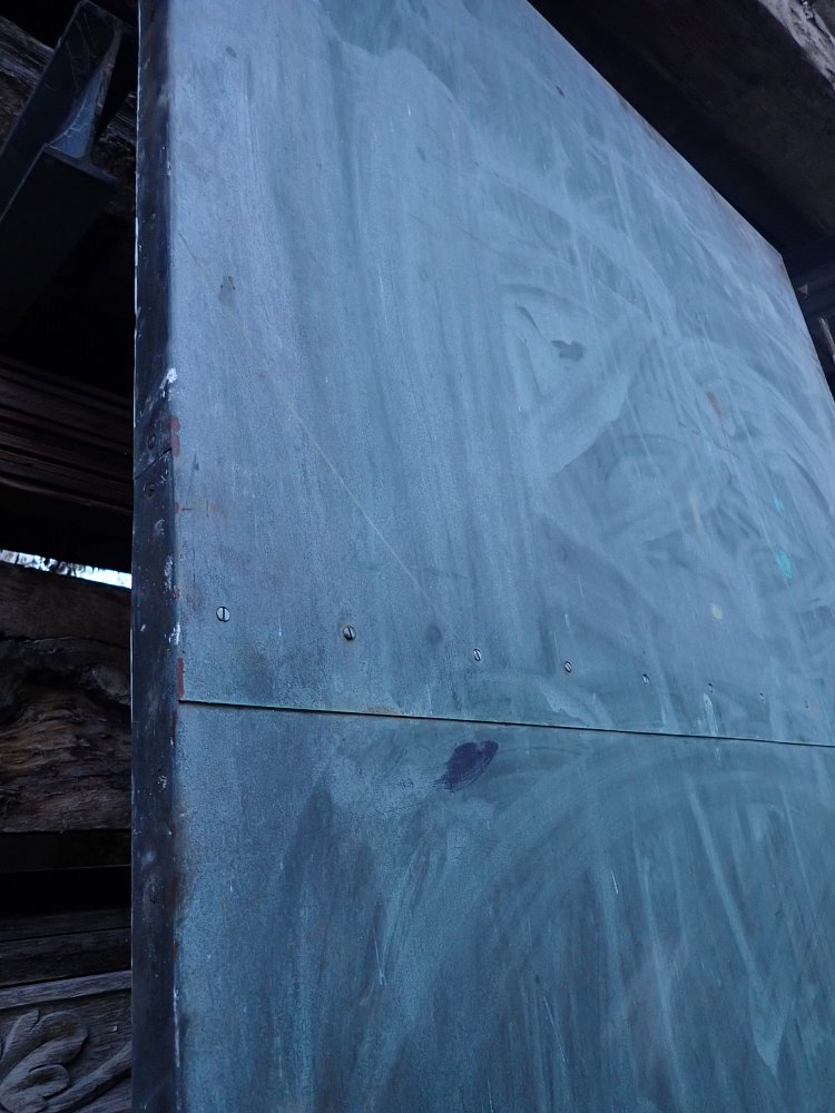 Die Kupferplatten haben über die Jahre eine wunderschöne grün/bläuliche Patina erhalten.