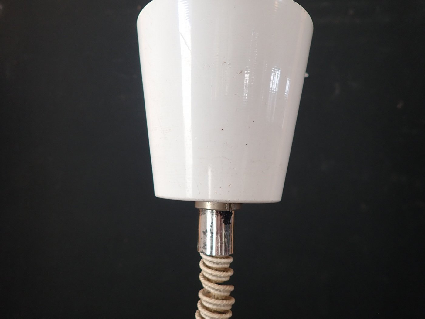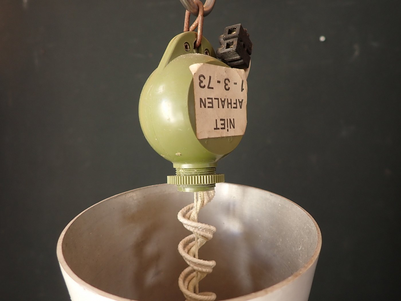 Aufgehängt ist die Leuchte an einem Zugpendel, das sich aktuell jedoch leider nicht verstellen lässt und vor einer weiteren Nutzung eine Überarbeitung oder ggf. einen Austausch braucht.