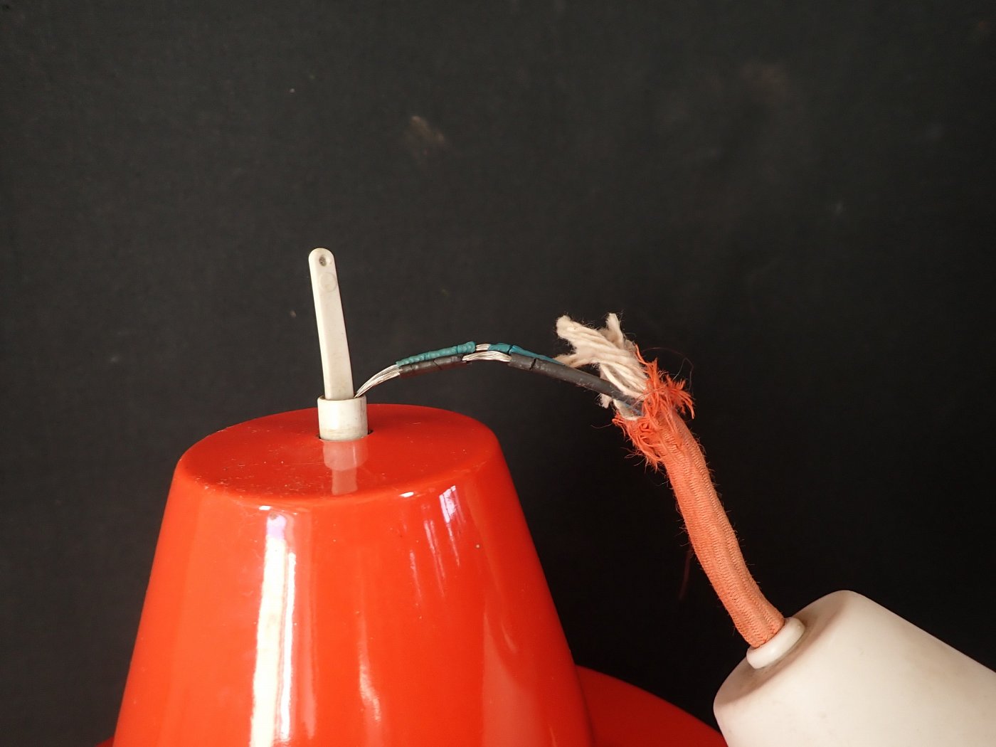 Bevor die Hängeleuchte wieder ein klares Statement im Stil der 70er Jahre setzen kann, braucht sie auf jeden Fall eine neue Verkabelung.