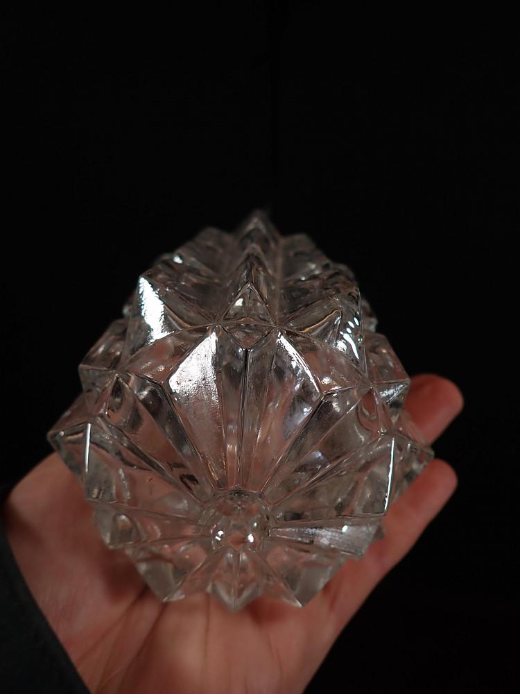 Deckenleuchte aus Pressglas bzw. Eisglas. Ein Original aus den 70-er Jahren. Heute ist das als Retro wieder in.