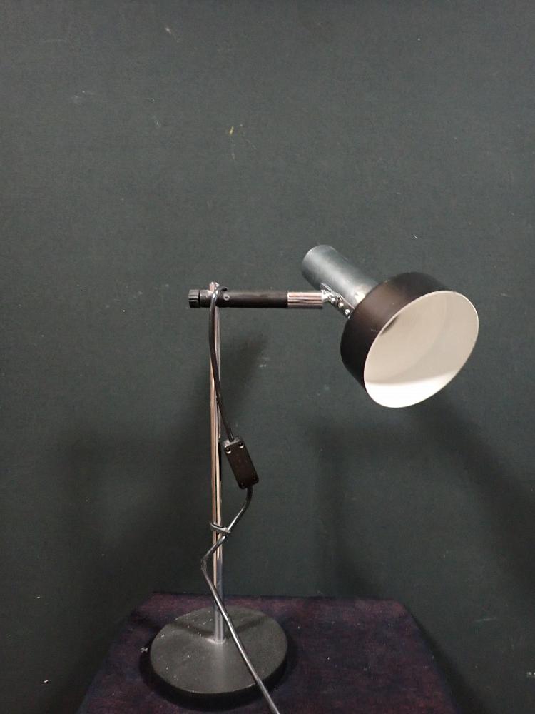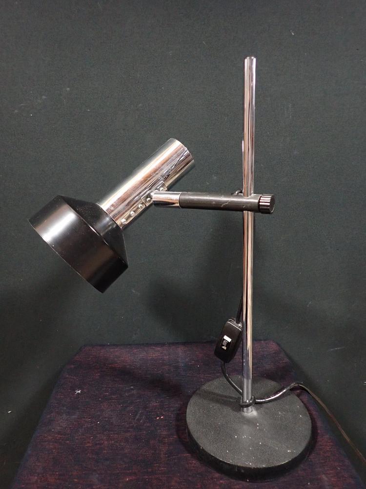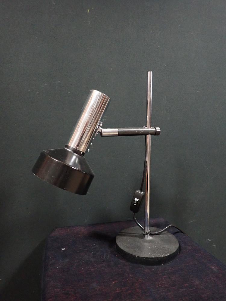 Kleine Tischleuchte mit verchromten Elementen.