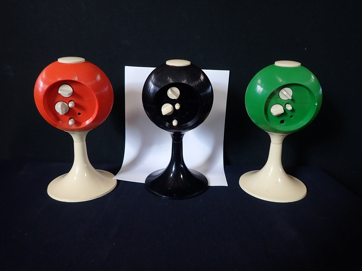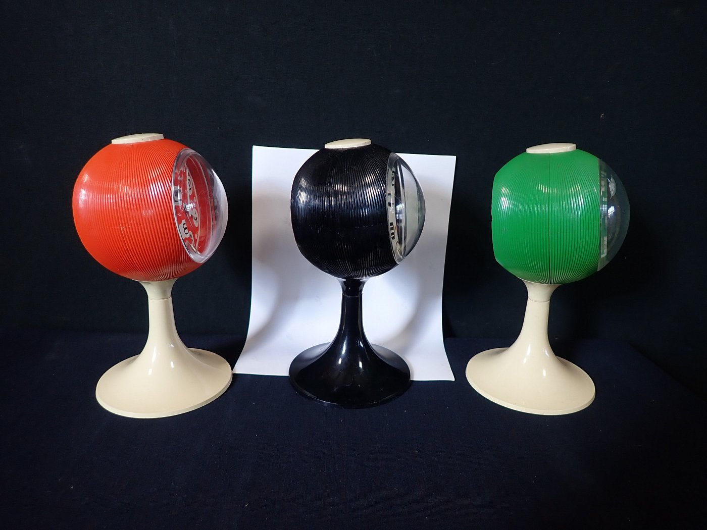 Die Uhren haben einen Tulpenformfuß und einen runden Uhren-Kopf. Das Ziffernblatt liegt hinter einer Plexiglasscheibe und hat die gleiche Farbe wie der Uhren Kopf. Um den Wecker auszuschalten ist ein runder Knopf auf dem Wecker. Auf der Rückseite des Weckers sind die Drehschalter zum Aufziehen und stellen der Uhr und dem Wecker.