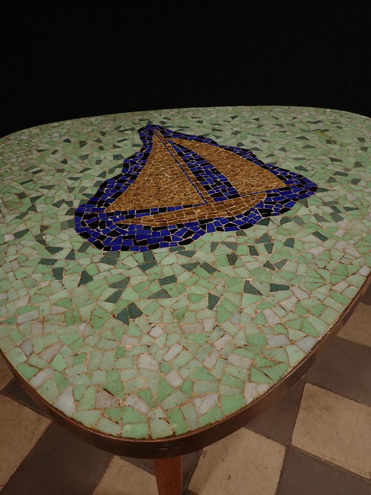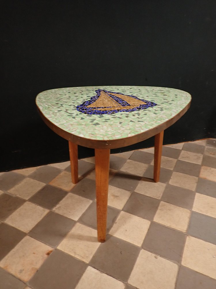 50er-Jahre Blumenhocker, Nierentisch aus Kunstharz mit Marmoroptik