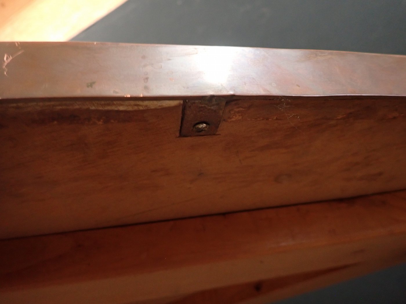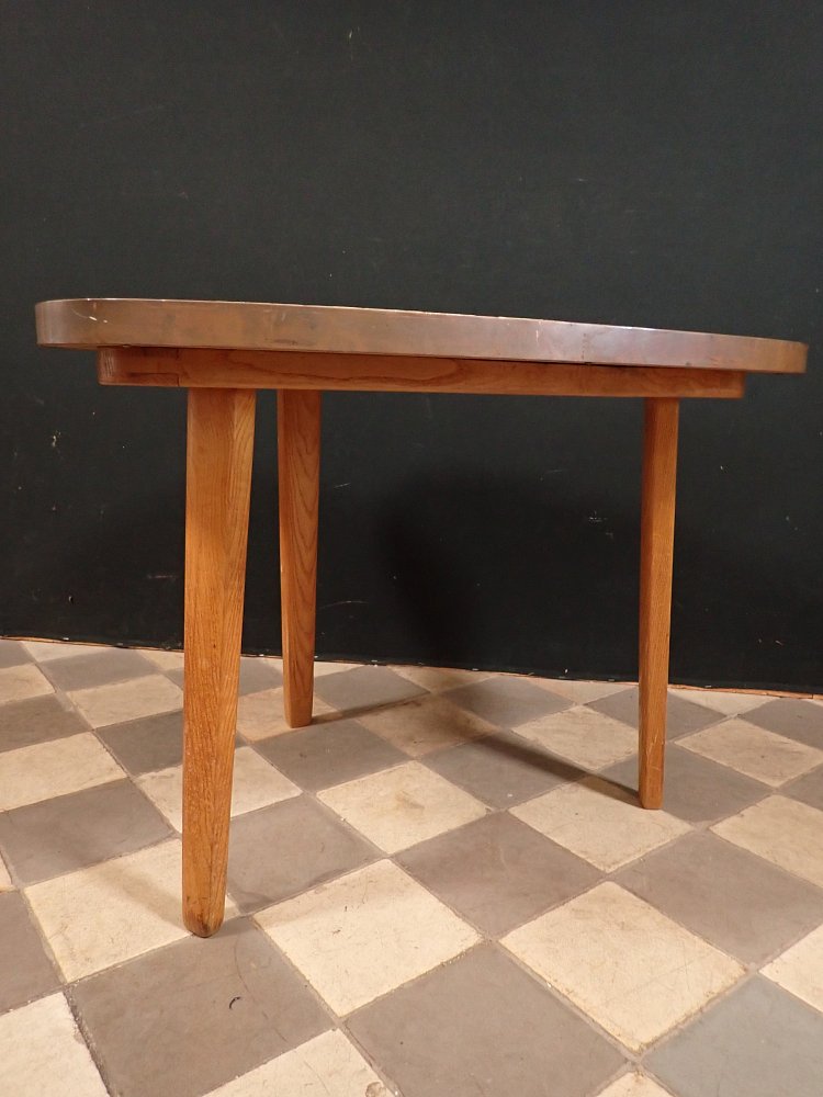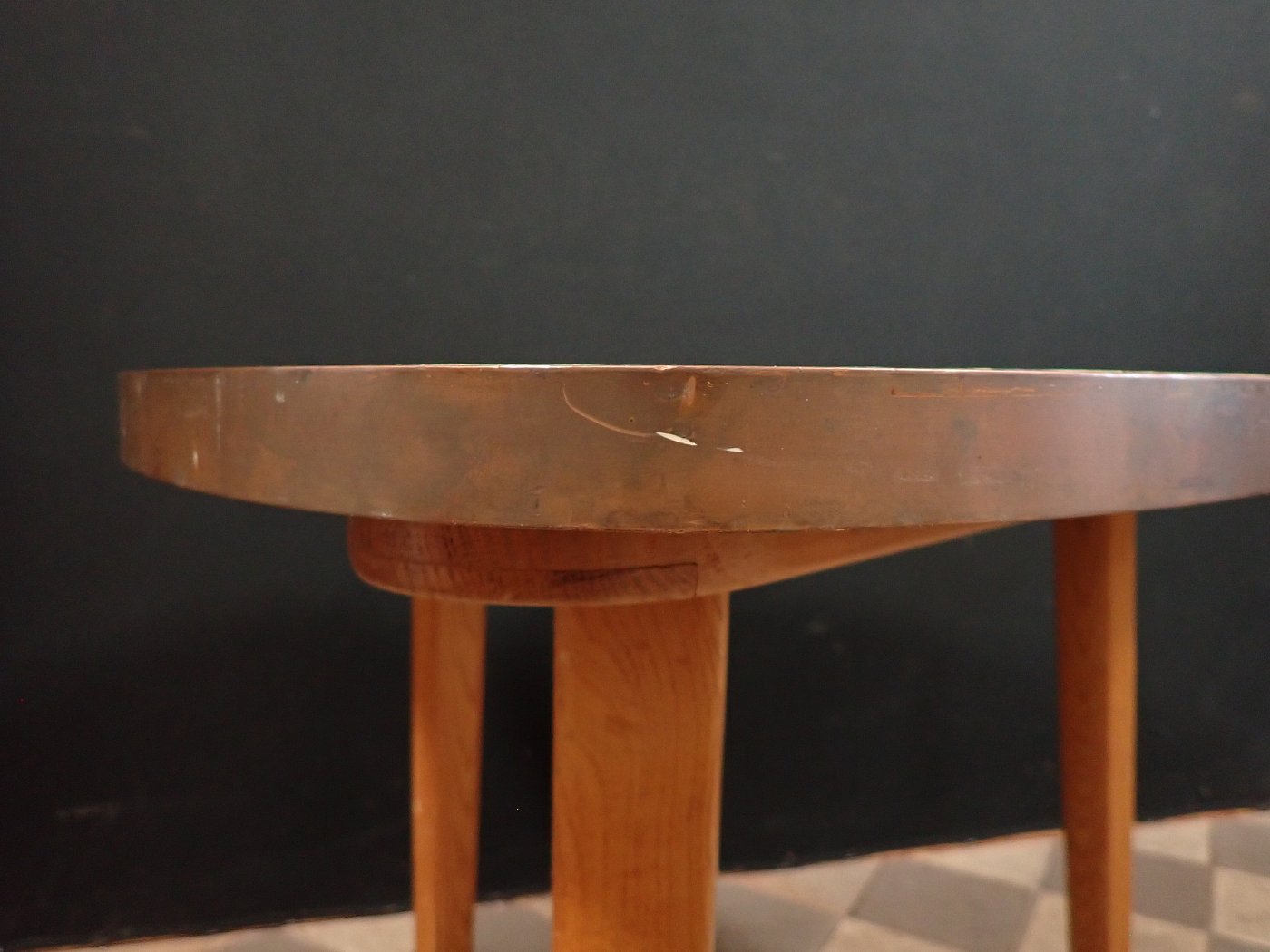 Der Blumenhocker wurde in den 50er-Jahren hergestellt. Bestehend aus drei Holzfüßen, die am Ende mit Messingkappen überstülpt sind, und einer Platte, die vermutlich...