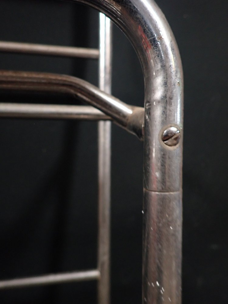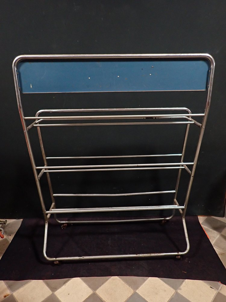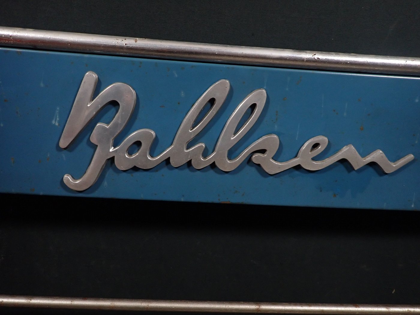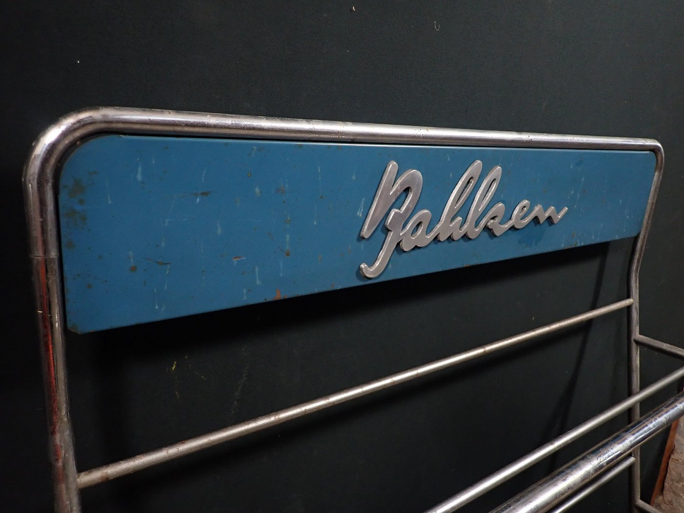 Das Regal besteht aus Metall und hat eine Werbeplatte mit der Aufschrift Bahlsen auch aus Metall. In den 90er-Jahren waren in dem Regal vermutlich die Kekspackungen von Bahlsen zum Verkauf ausgestellt, heute kann man das Regal z.B. als Schuhregal verwenden.