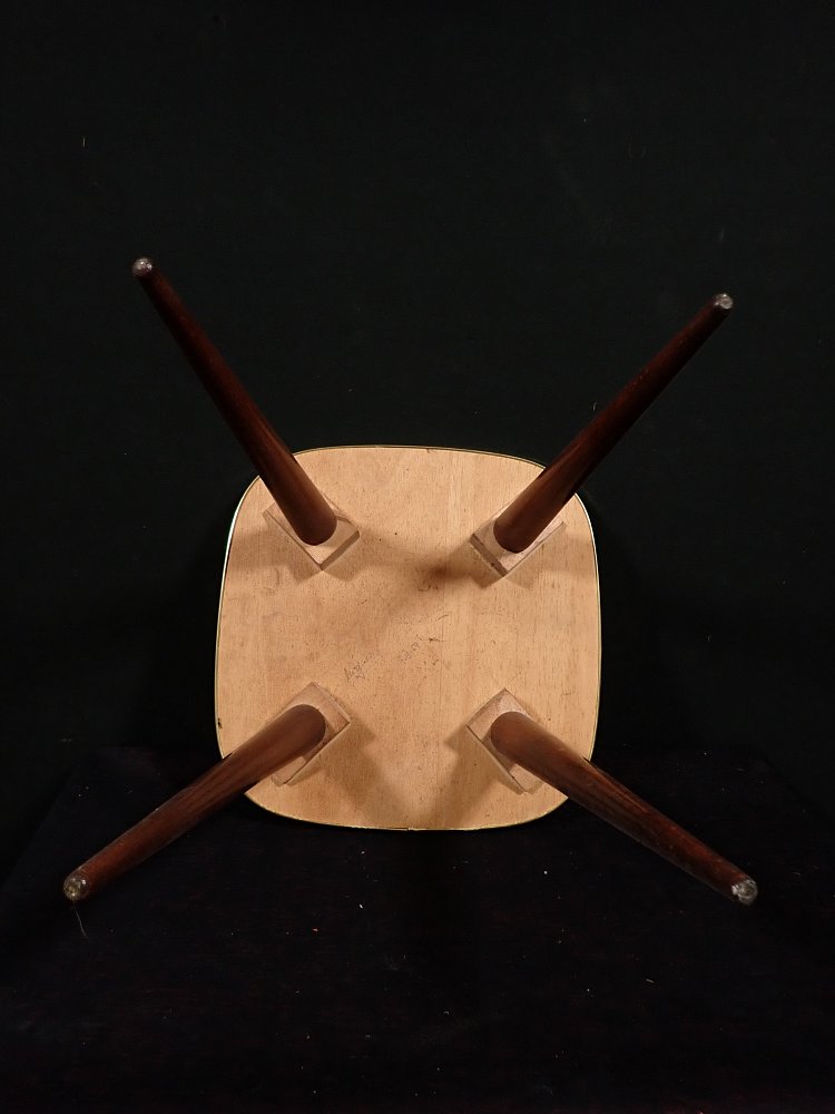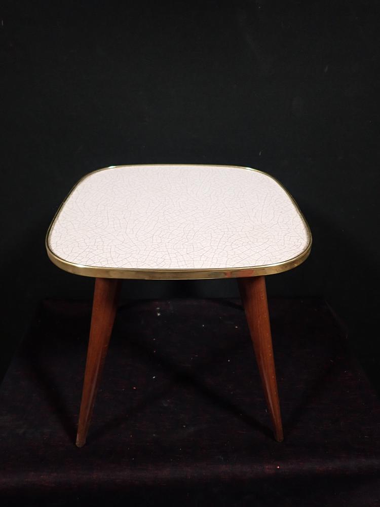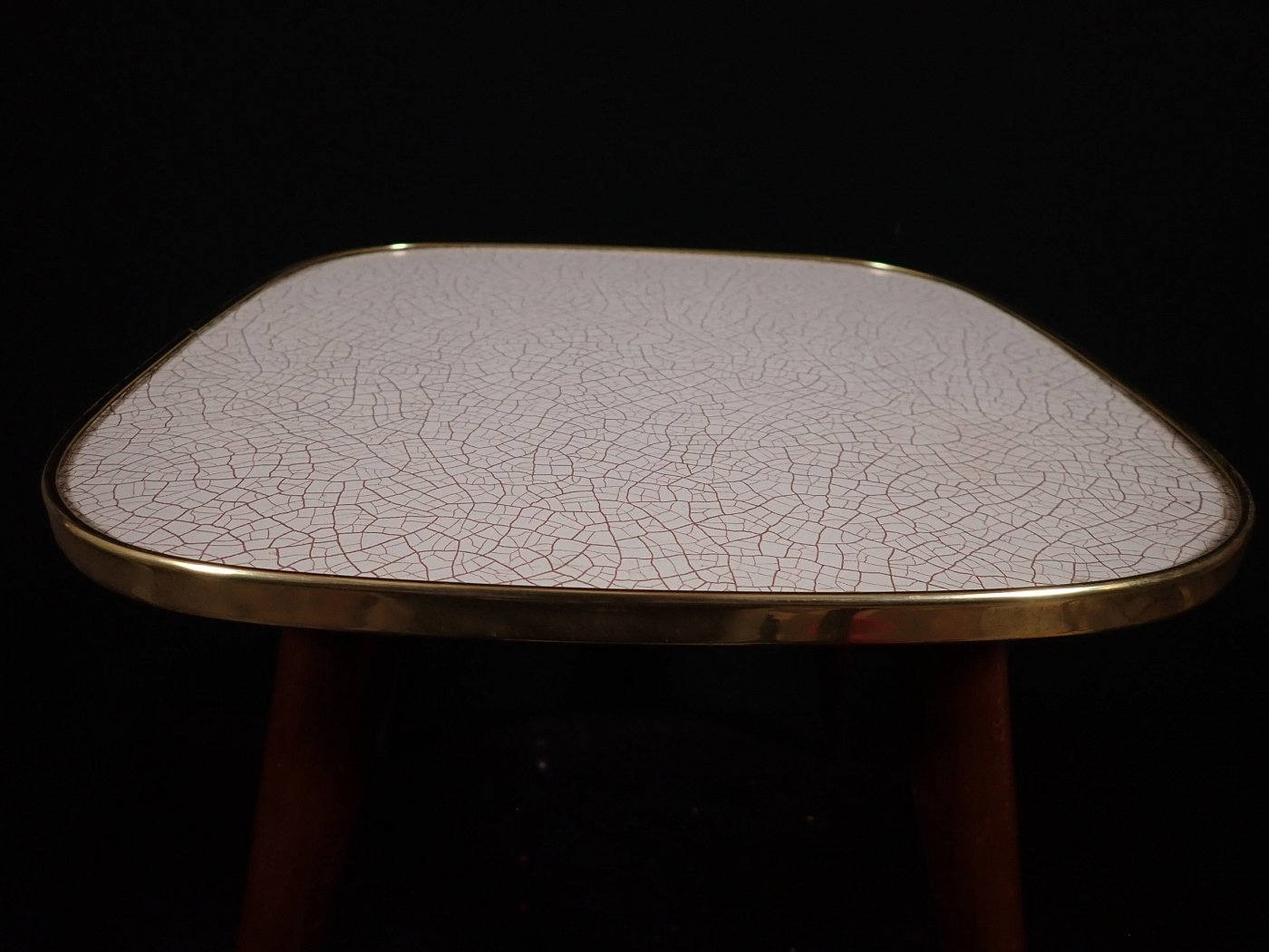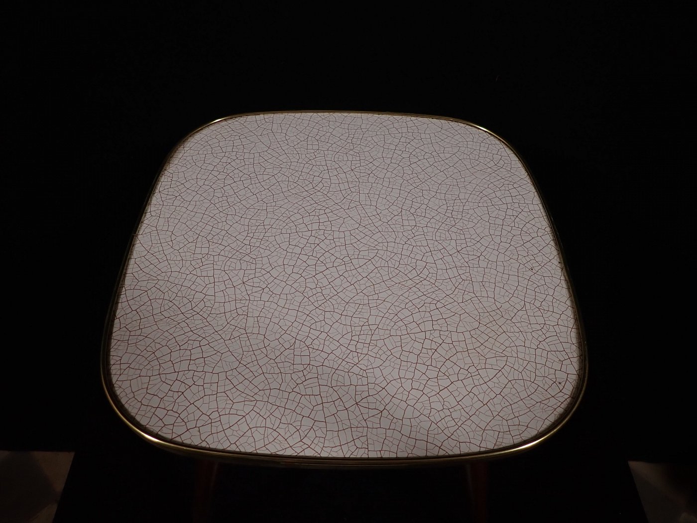 DetailansichtBlumenhocker aus den 50er-Jahren. Das Besondere bei diesem Nierenförmigen Blumenhocker ist, dass die Platte aus massivem Stein ist. Foliert ist die Steinplatte...