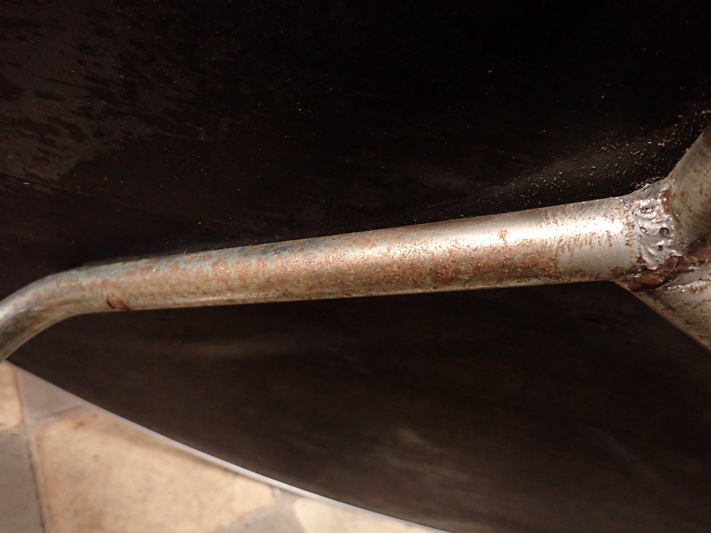 Der kleine Tisch kann die Spuren der Zeit nicht leugnen und braucht auf jeden Fall noch etwas Pflege, um beispielsweise die Chromelemente wieder aufzupolieren.