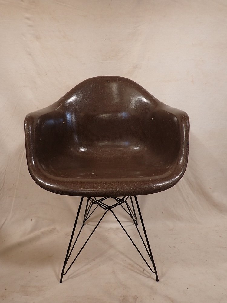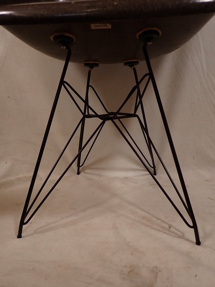 Die Stuhlschale besteht aus Fiberglas also glasfaserverstärktem Kunststoff, was dem Stuhl durch die sichtbaren Glasfasern ein besonderes aussehen verleiht. Das Eiffel Untergestell besteht aus verschweißten Drahtverstrebungen.