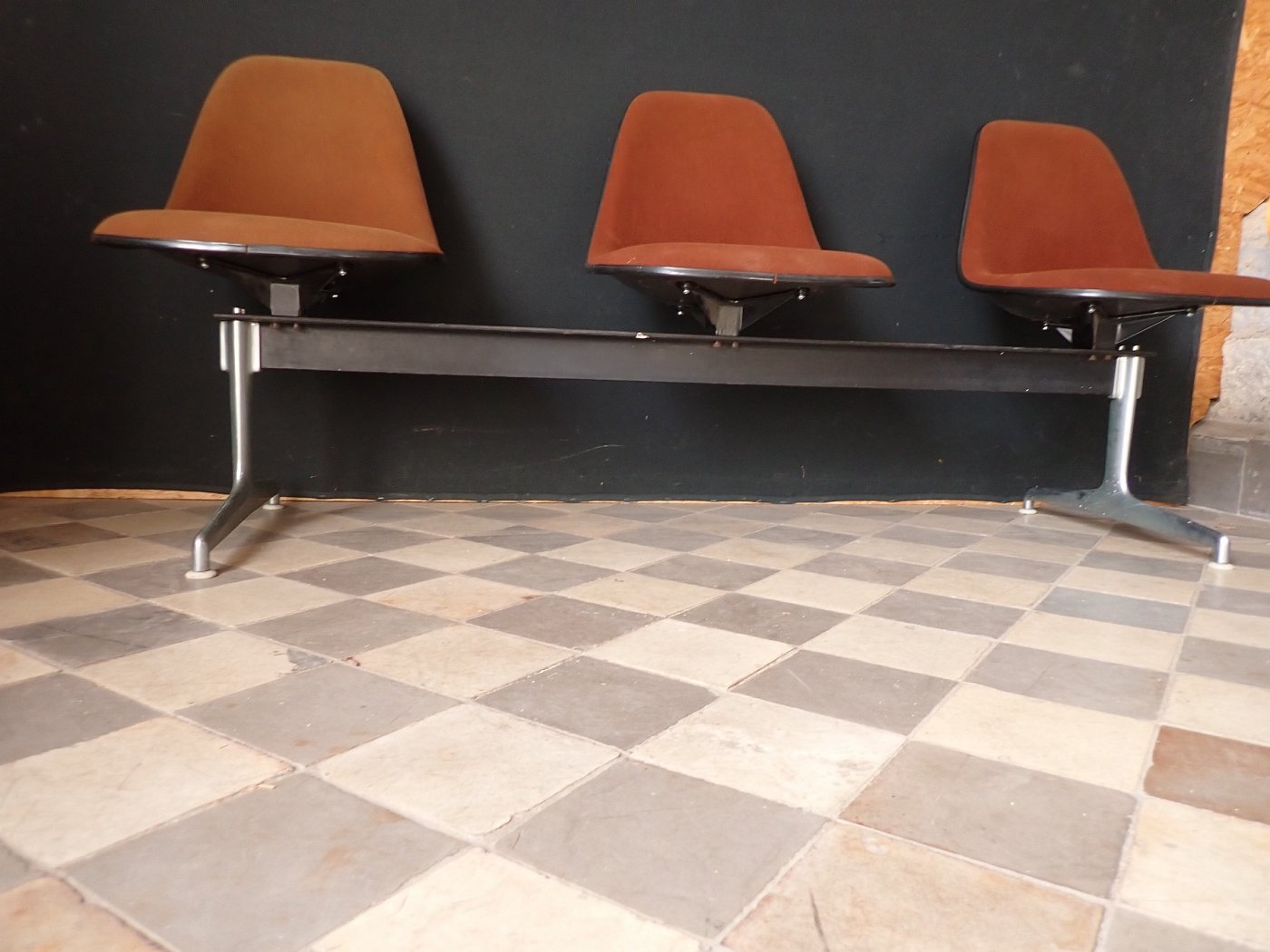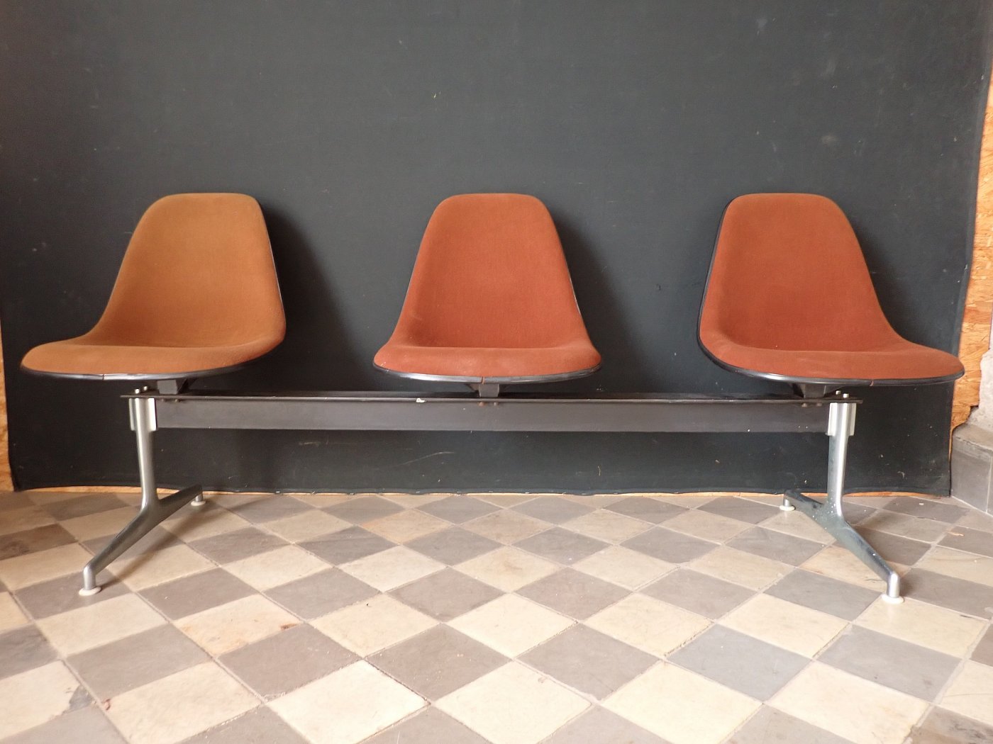 Eames Tandem Sitzbank mit Braunen Sitzschalen