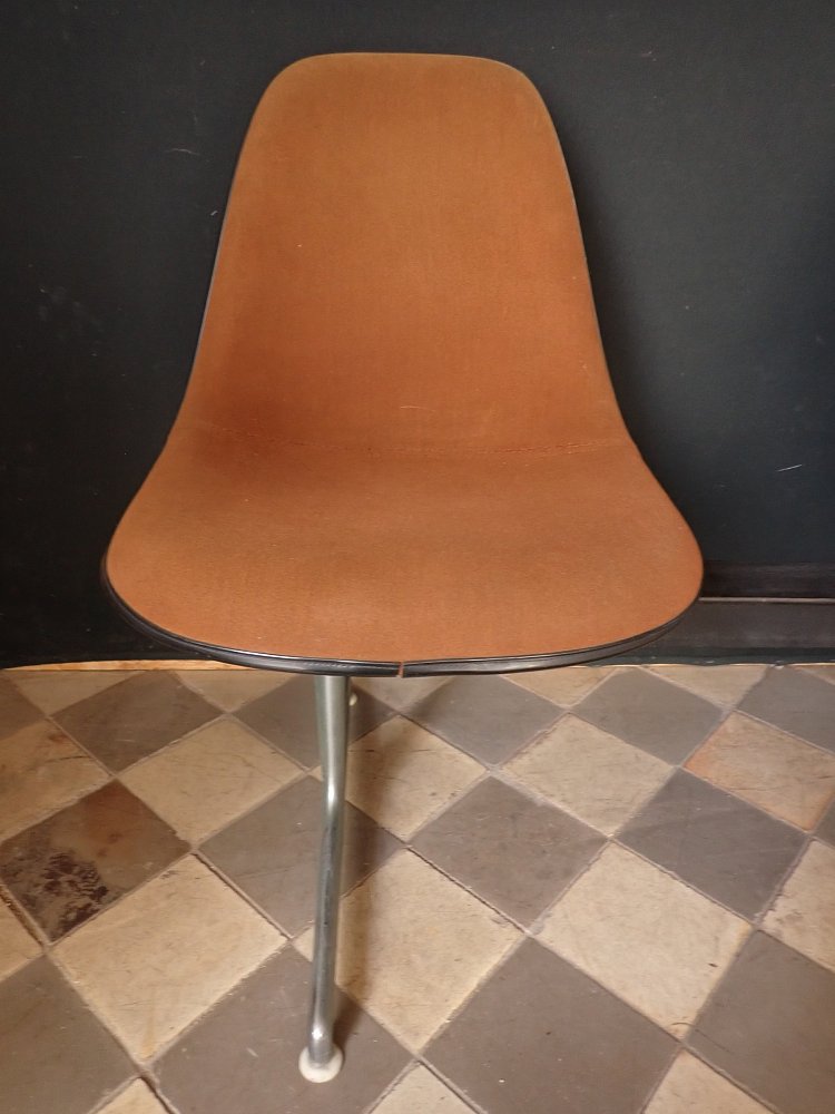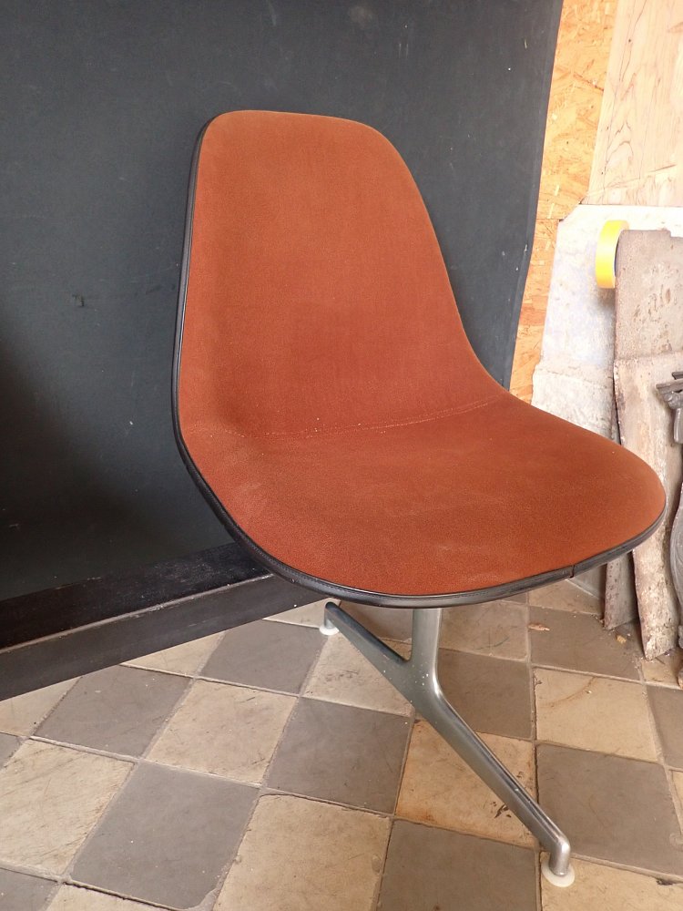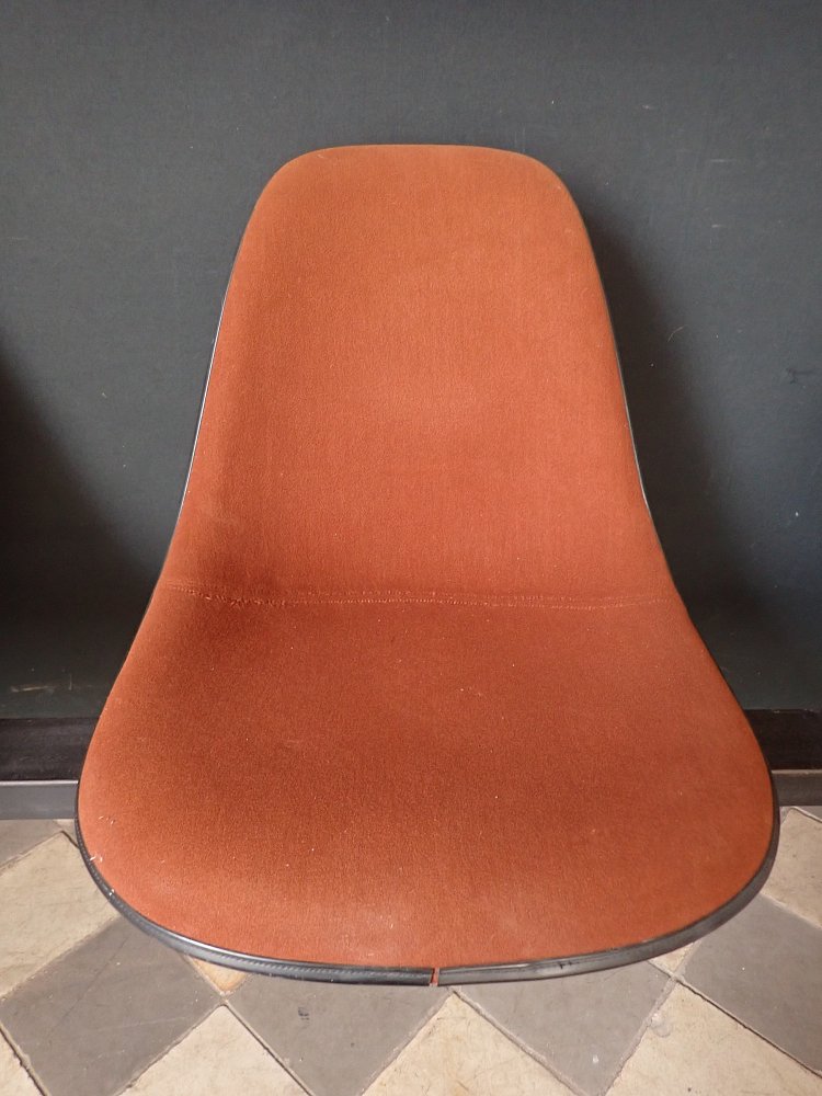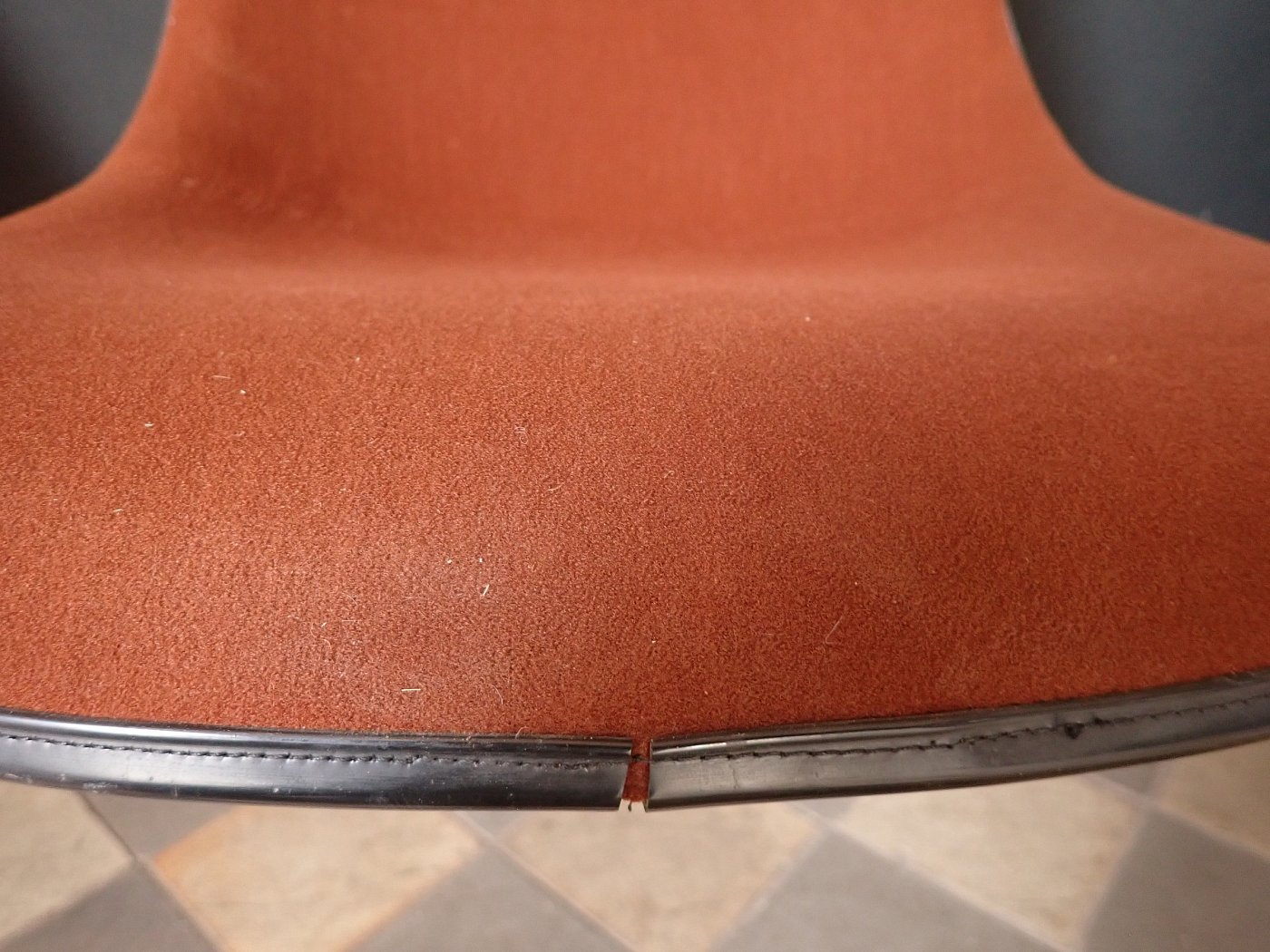 DetailansichtVitra Eames Chair DSX in Orange aus den 60er-Jahren. Die Sitzschale besteht aus Fiberglas (Glasfaserverstärktes Kunststoff) und hat eine unregelmäßige Oberfläche...