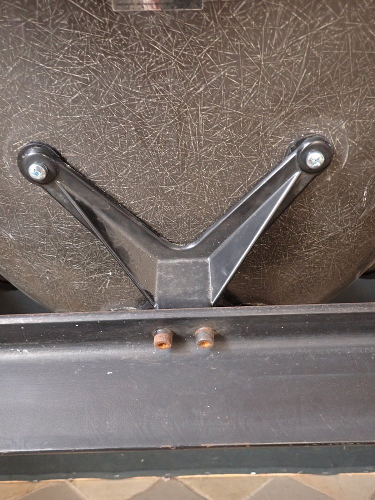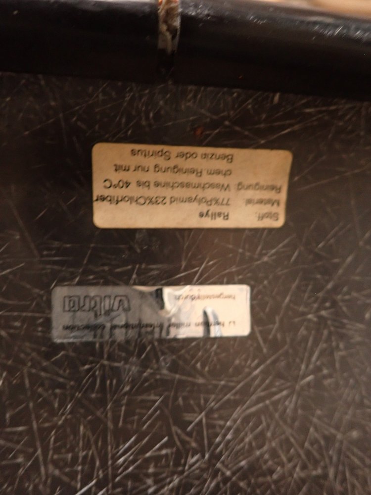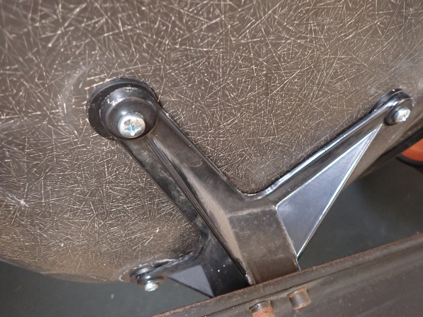 Das Untergestell besteht aus einer Stahlträger artigen Stahlstange und Metall, auf dem die Sitzschalen mit vier Schrauben festgeschraubt wurden. Die Sitzschalen wurden aus Fiberglas (glasfaserverstärktem Kunststoff) hergestellt und haben ein polster Bezug der mit dem braun/orangen Rallye Stoff überzogen ist.