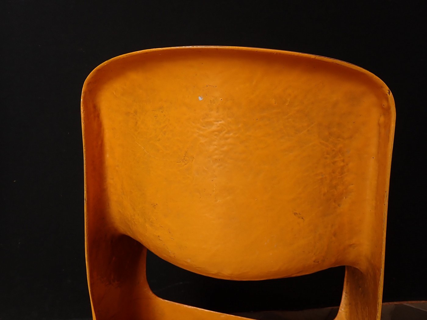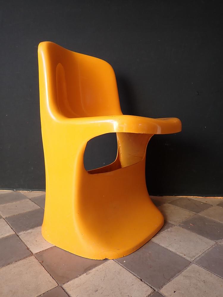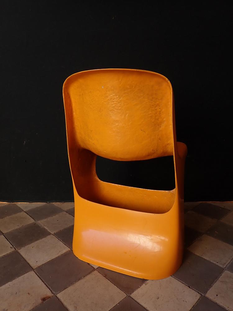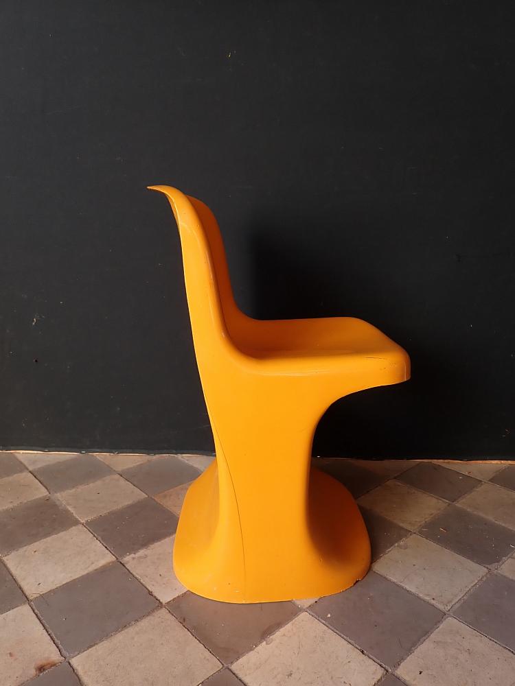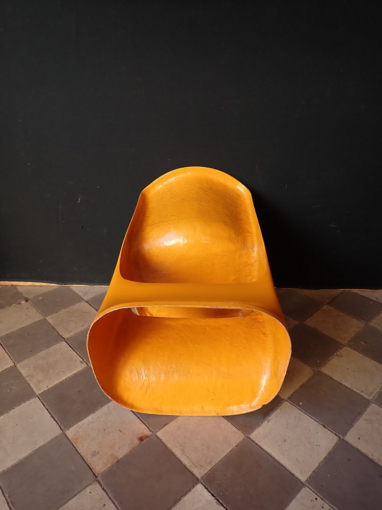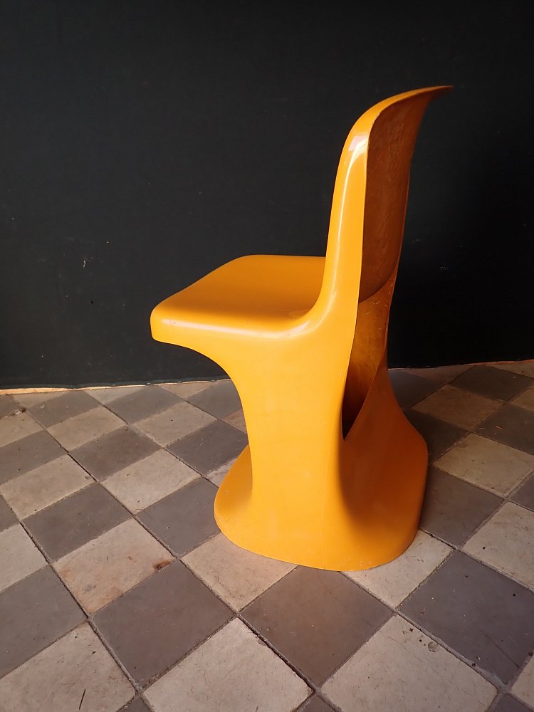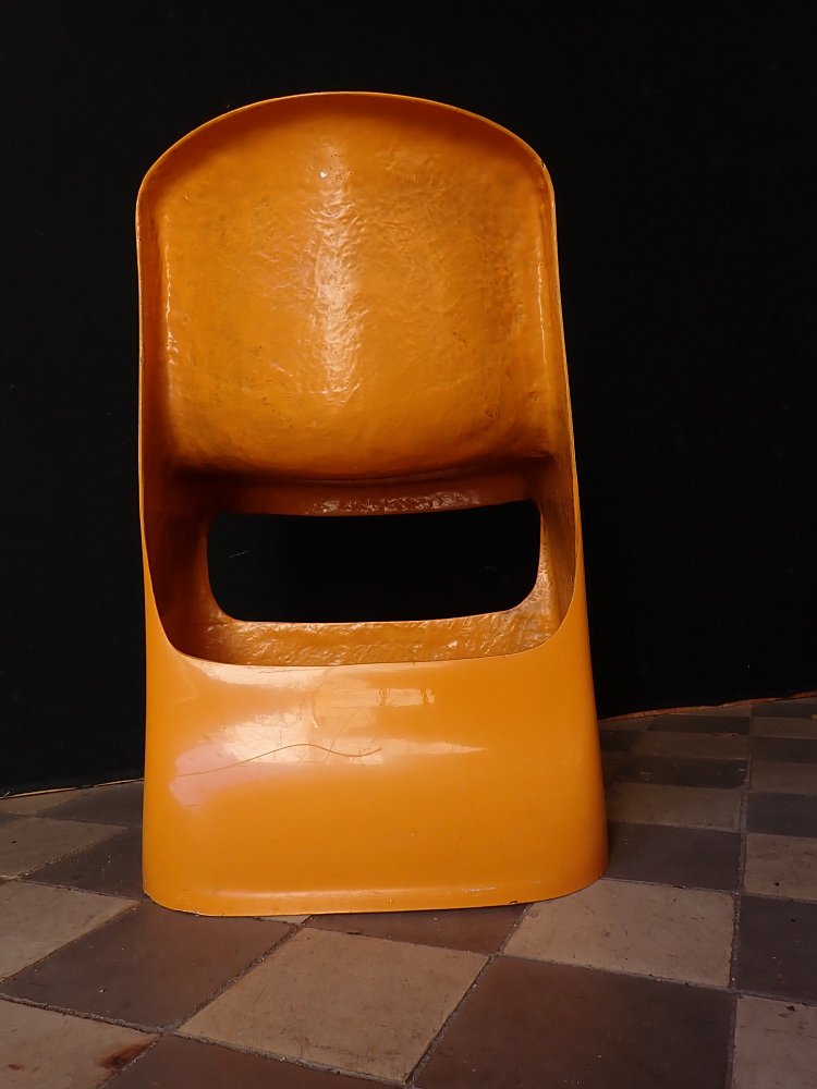 Designerstuhl aus gelbem Fiberglas.