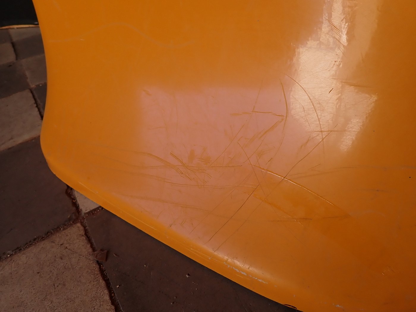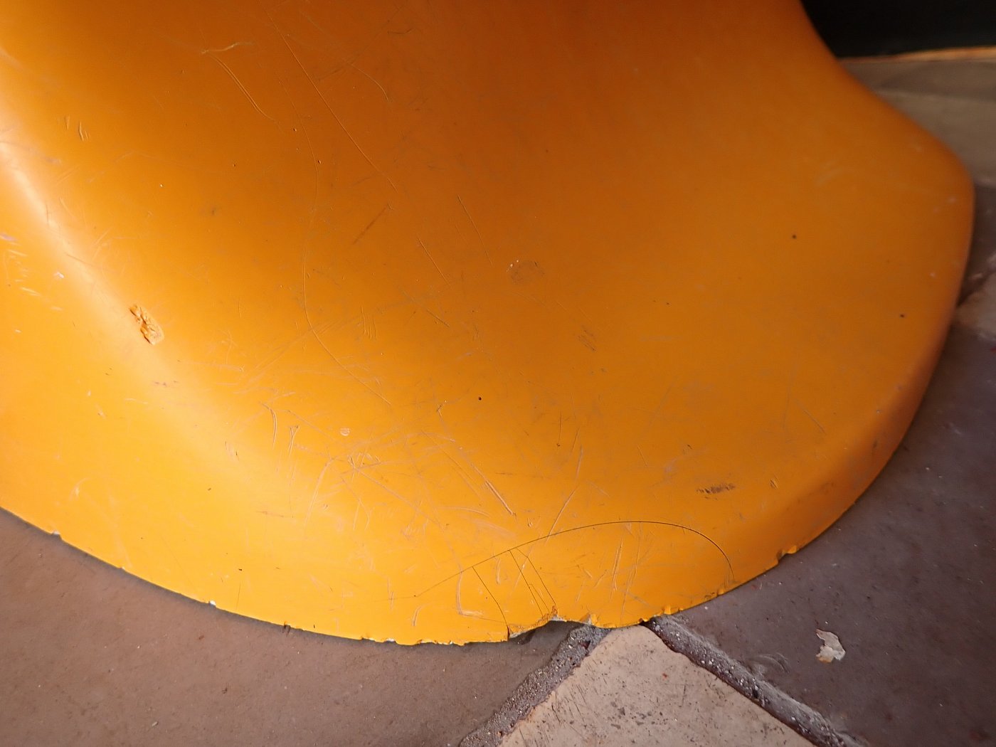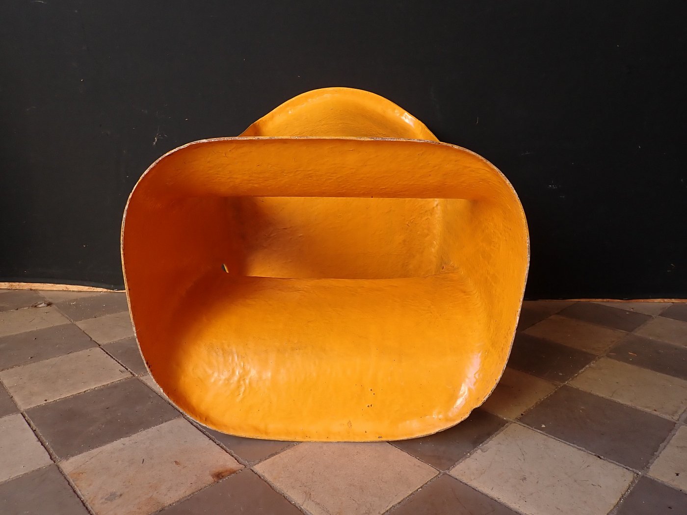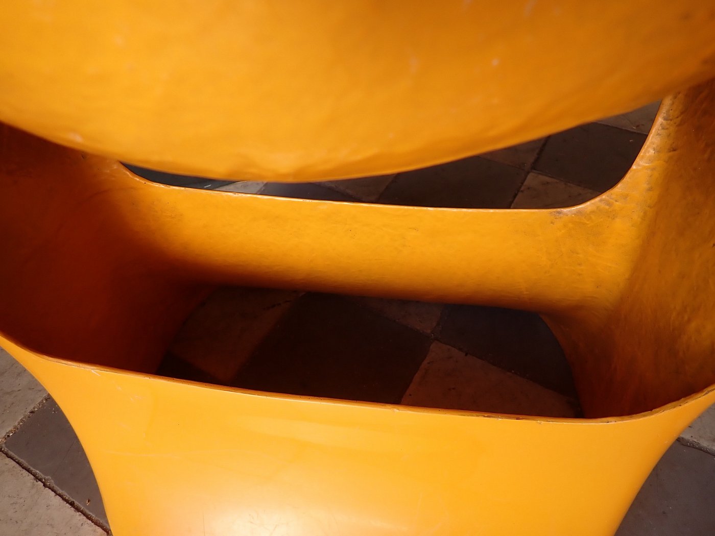 Designerstuhl aus gelbem Fiberglas.