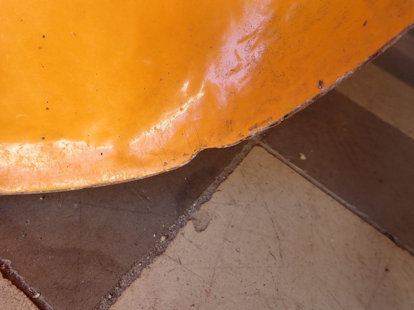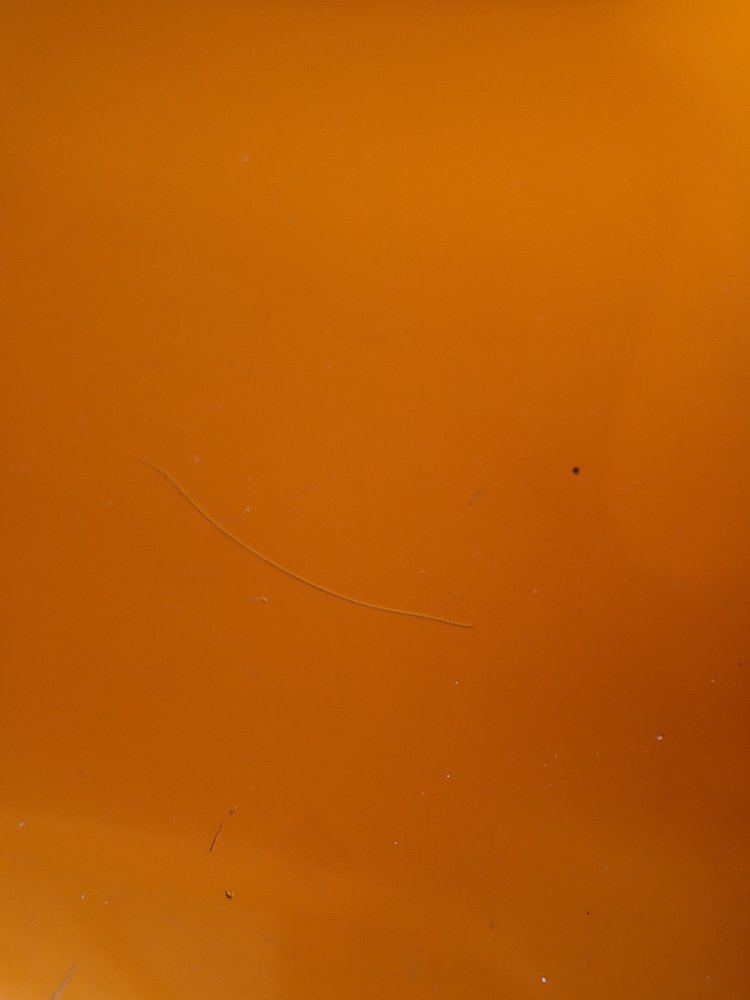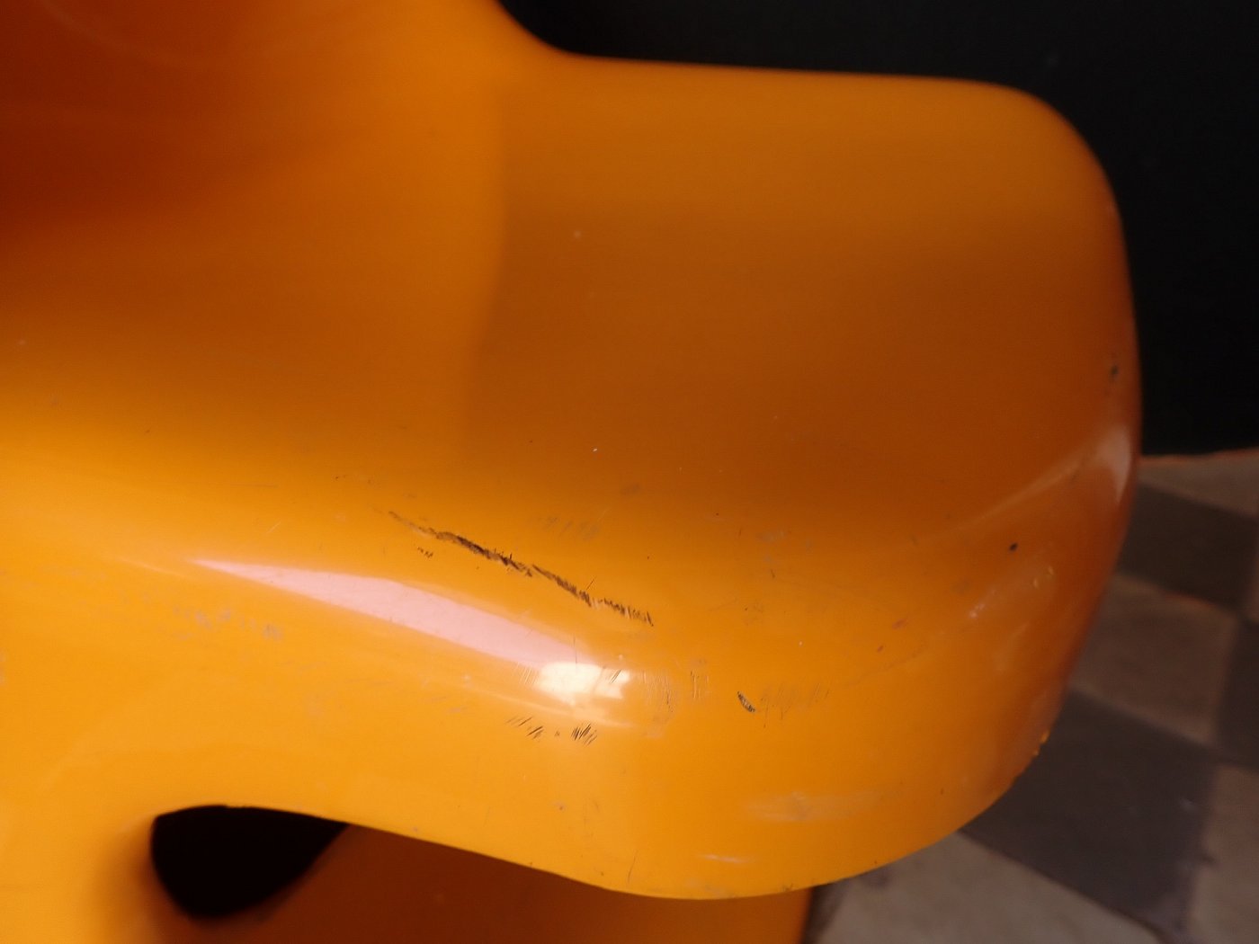 Abgesehen von leichten Kratzern und den typischen Gebrauchsspuren auf der Oberfläche des Stuhles befindet er sich ansonsten in einem guten Zustand.