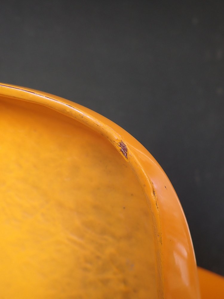 Der Stuhl ist nicht nur bequem, sondern setzt mit seinem kräftigen Gelb auch einen fröhlichen Farbakzent im Wohnraum ganz im Stil der 70-er Jahre.