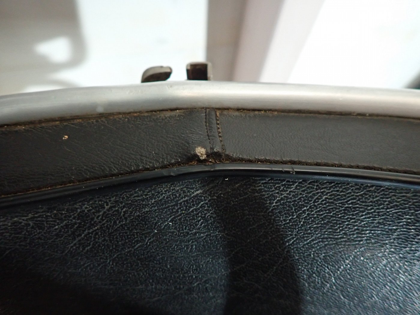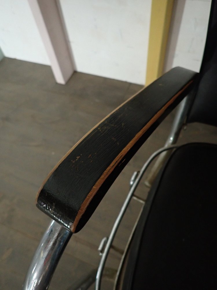 Die Holzarmlehnen sind etwas abgenutzt und könnten abgeschliffen und neu lackiert werden.