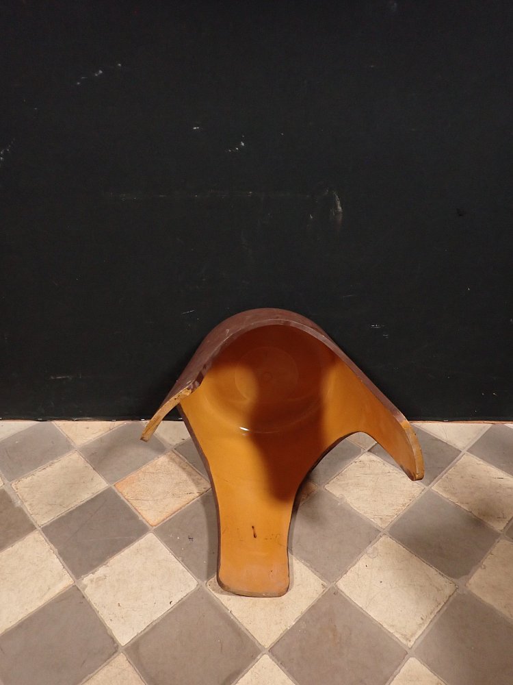 DetailansichtDesignerstuhl aus gelbem Fiberglas. Das Design des Stuhles stammt aus der Feder des italienischen Designers Alberto Rosselli, welcher den Stuhl in den 70-er Jahren...