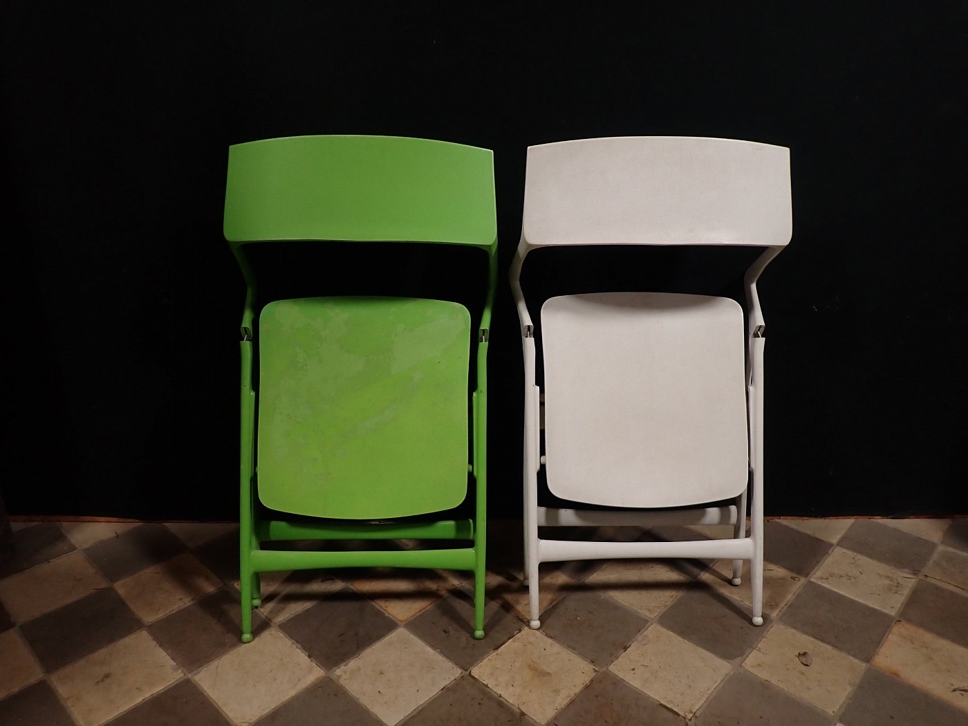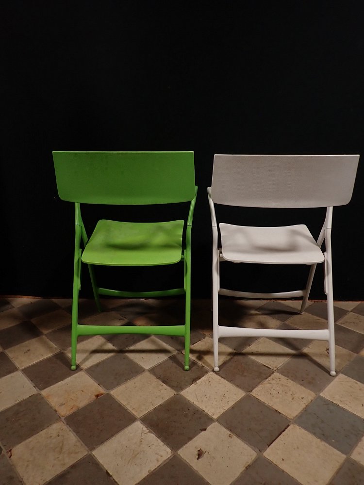 DetailansichtKlappstühle des italienischen Designunternehmens Kartell.