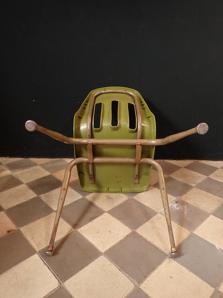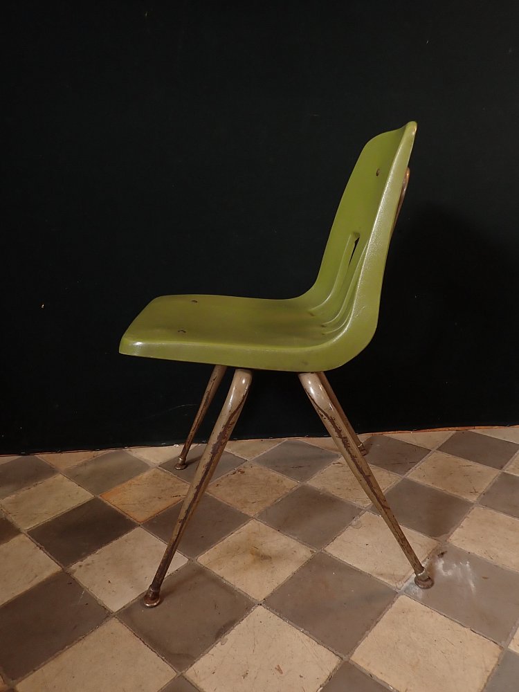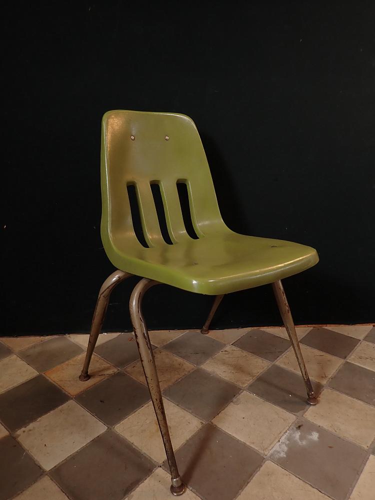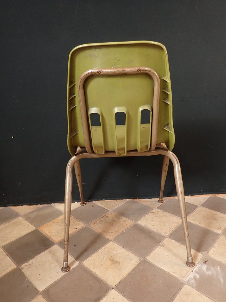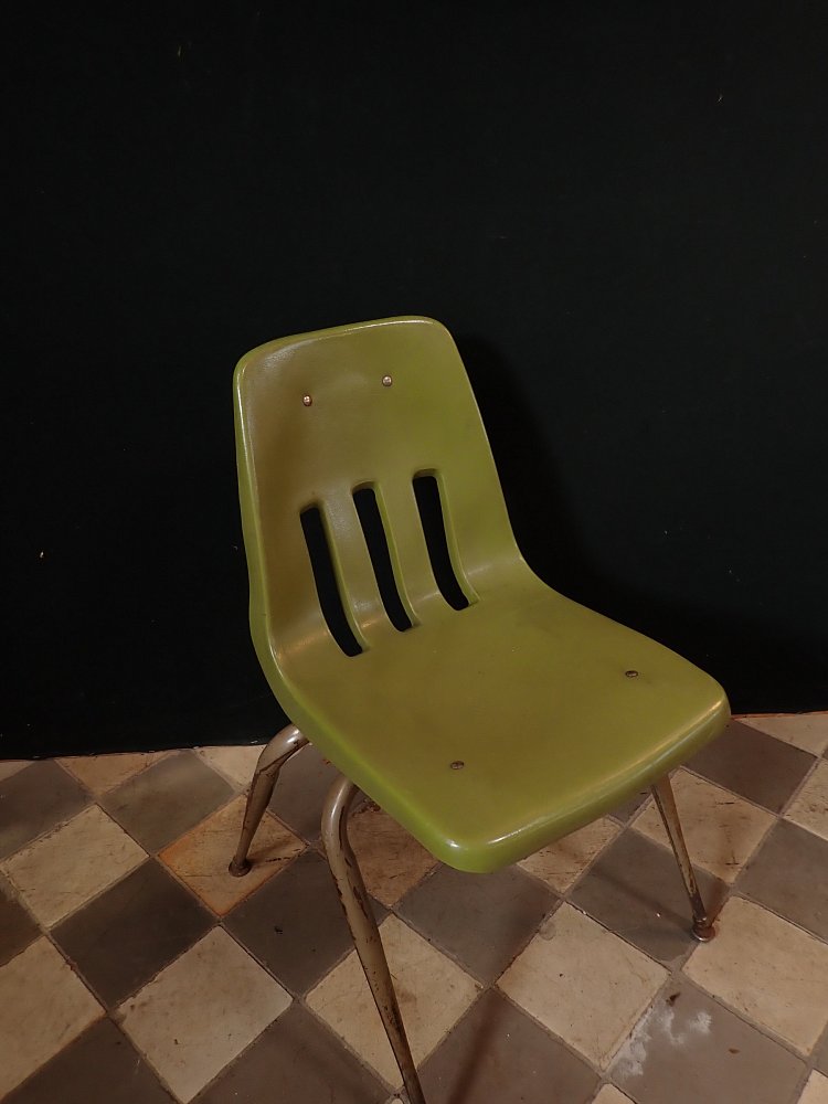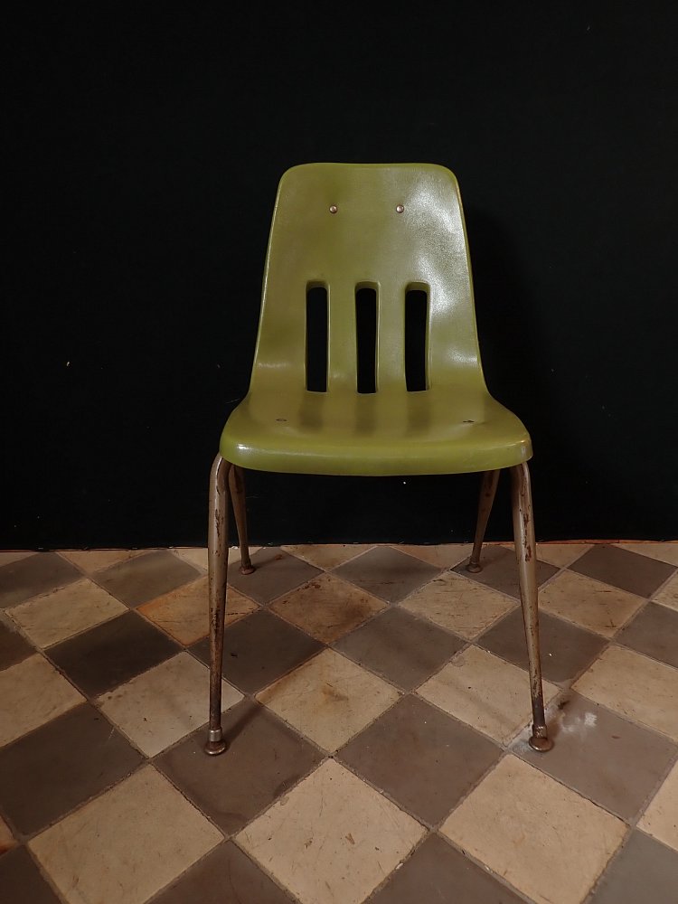 Stuhl mit grüner Kunststoffsitzschale.