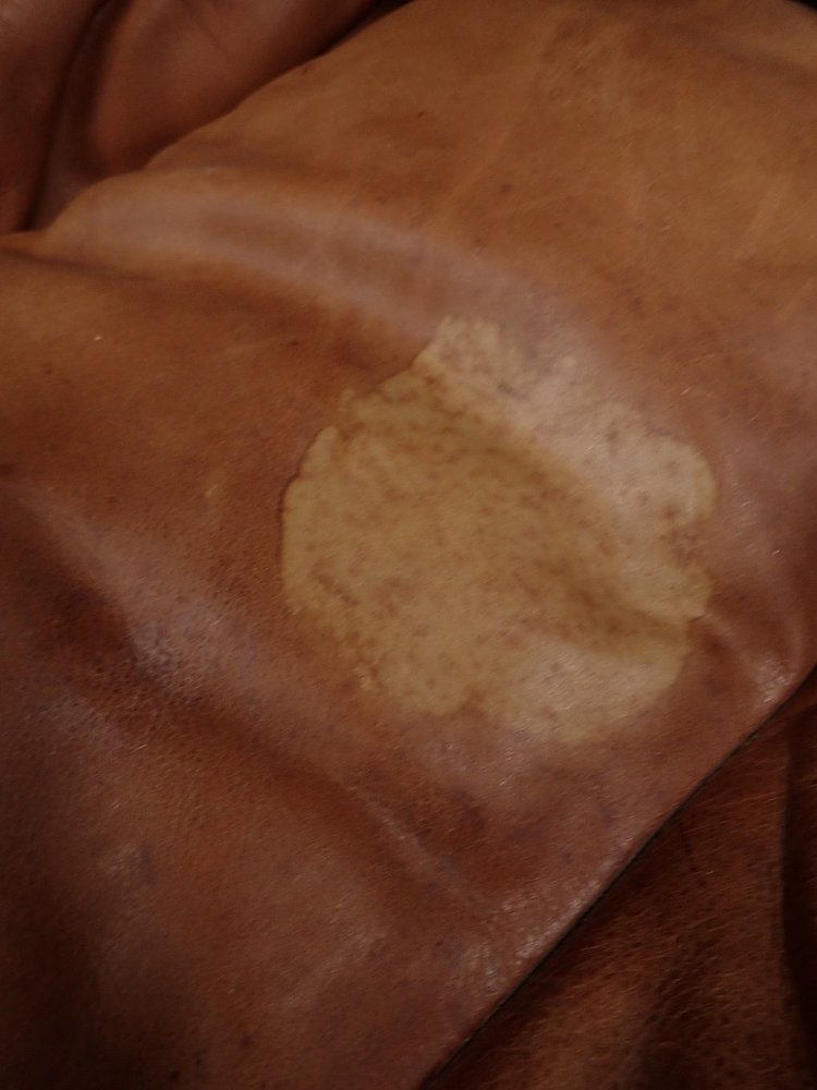 Vermutlich gehört der Lederbezug nicht zu dem Klappstuhl, da das ganze unstimmig und unpassend aussieht. Der Lederbezug hat auf der Sitzfläche einen hellen Wasserfleck.