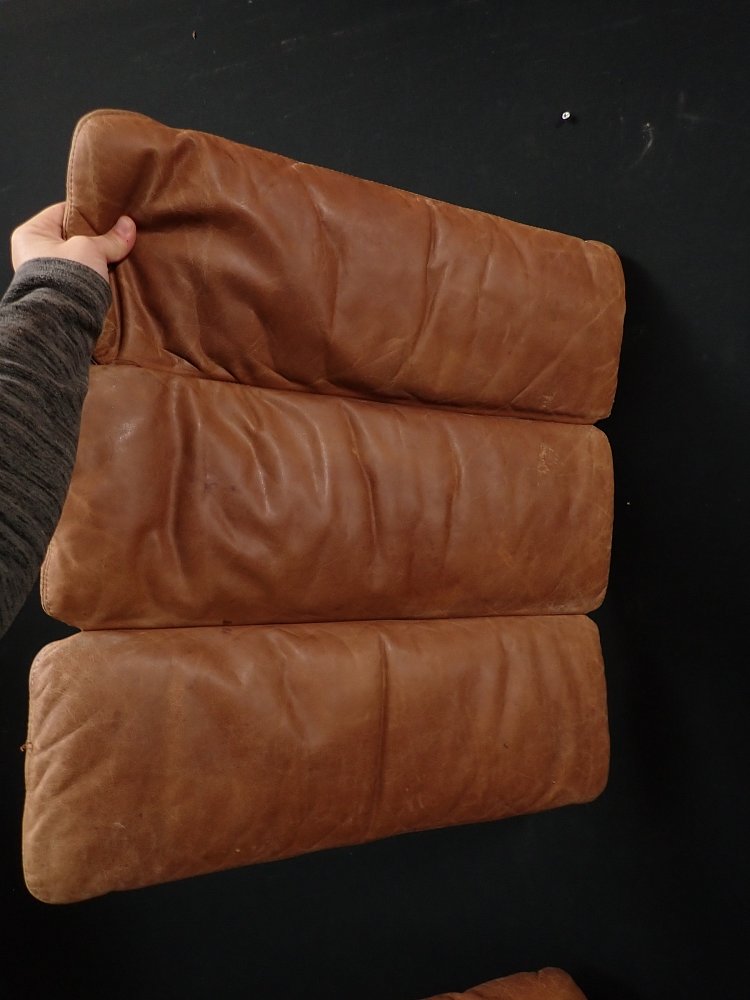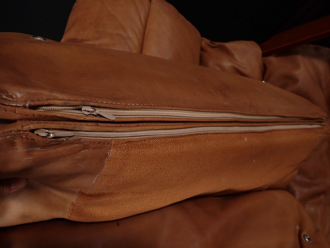 Der Lederbezug ist durch einen Reißverschluss abnehmbar. Das Leder wurde von uns mit Lederfett eingefettet.