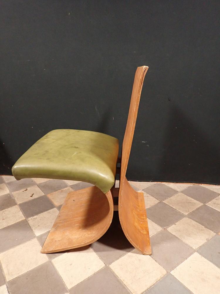 DetailansichtDer Stuhl wurde in den 50er-Jahren von Lignoform entworfen. Das Stuhlgestell besteht aus Holz und hat eine außergewöhnliche Form. Der Polsterbezug wird in der...