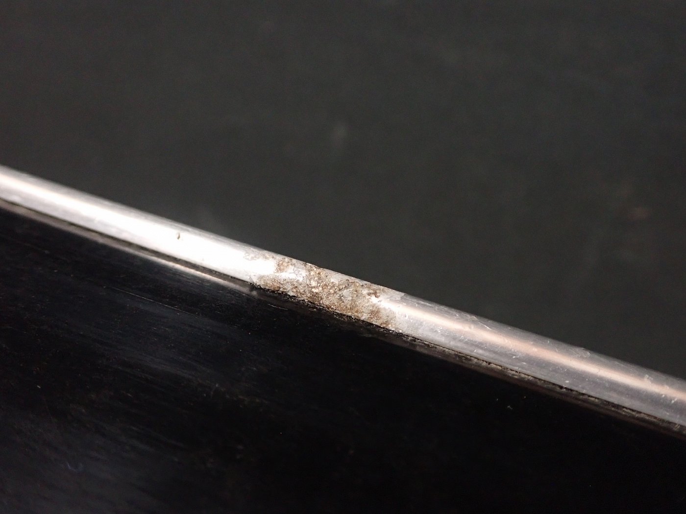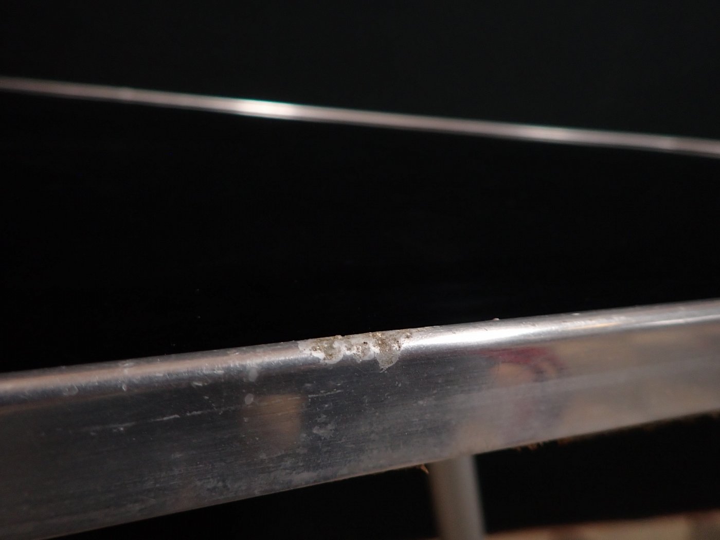Als typisches Wohnaccessoire im Stil der 50-er Jahre überzeugt der Tisch als Couchtisch im Wohnzimmer oder als kleiner Beistelltisch, auch wenn die schwarze Oberfläche einige Gebrauchsspuren in Form von Kratzern aufweist.
