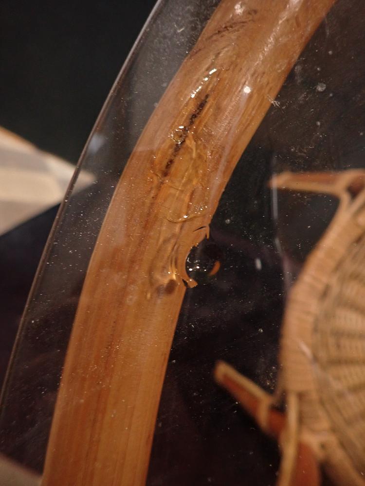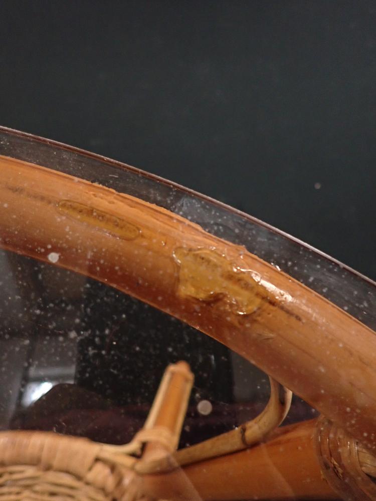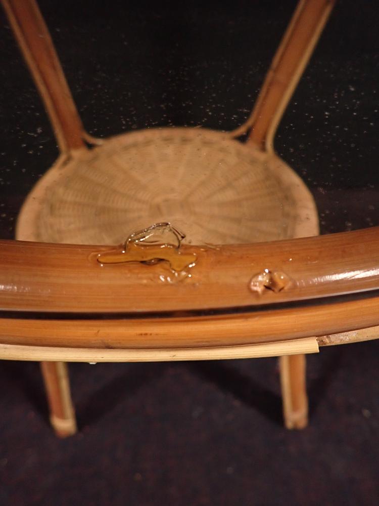 DetailansichtDer Stuhl hat ein Metall Untergestell, worauf die Rattan Sitzschale geschraubt wurde. An der Rattan Sitzschale sind einige Verbindungsschnürde abgegangen. Und...