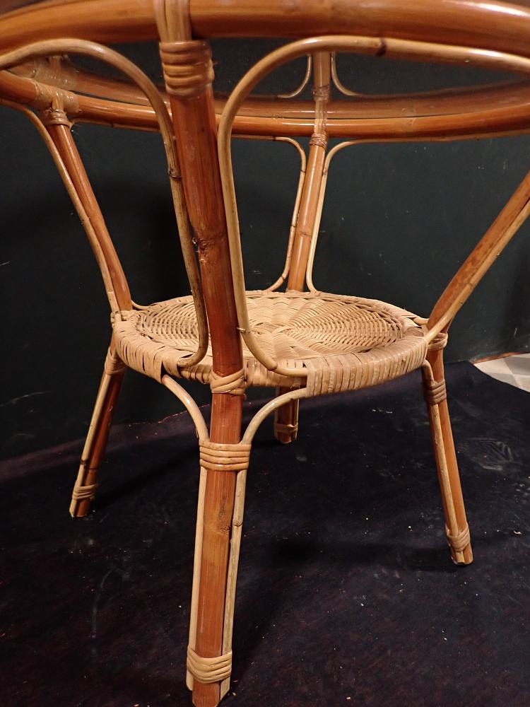 DetailansichtDer Rattanstuhl besteht komplett aus Rattan, und ist ursprünglich nur mit kleinen Nägeln und Rattenschnüren zusammengesetzt. Über die Jahre sind besonders im...