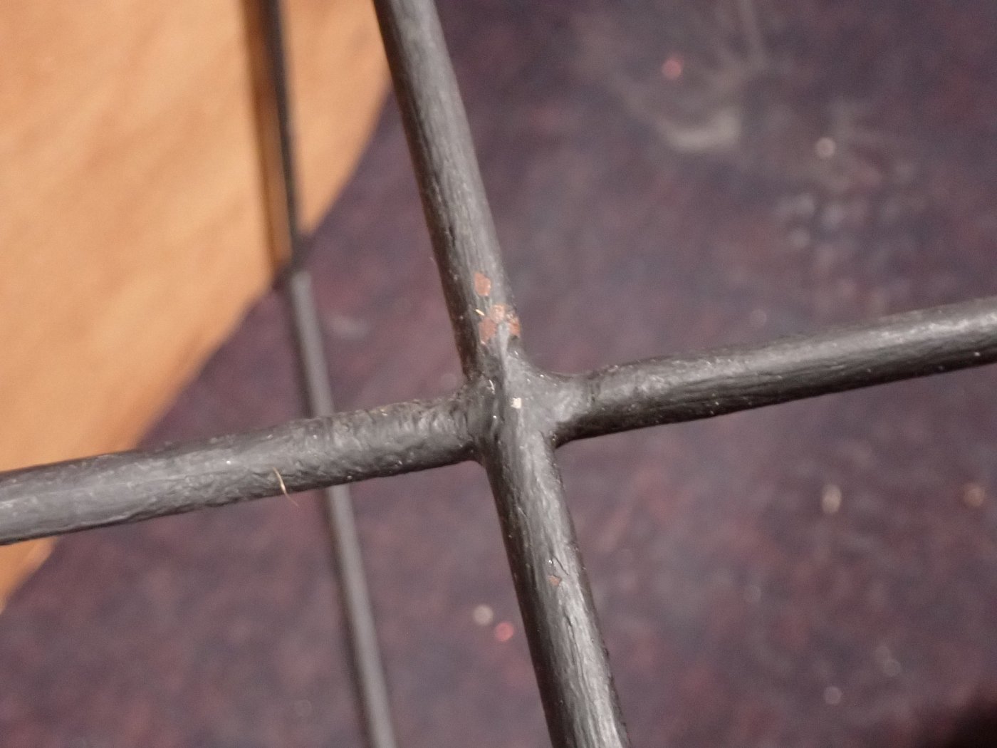 DetailansichtDer Stuhl hat ein Metall Untergestell, worauf die Rattan Sitzschale geschraubt wurde. An der Rattan Sitzschale sind einige Verbindungsschnürde abgegangen. Und...