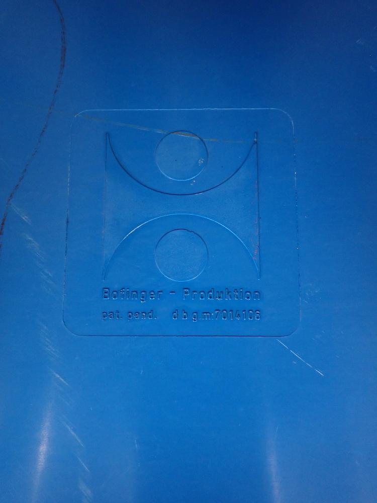 Der quadratische Tisch wurde von dem deutschen Architekten und Designer Helmut Bätzner entworfen und von der baden-württembergischen Firma Bofinger produziert.