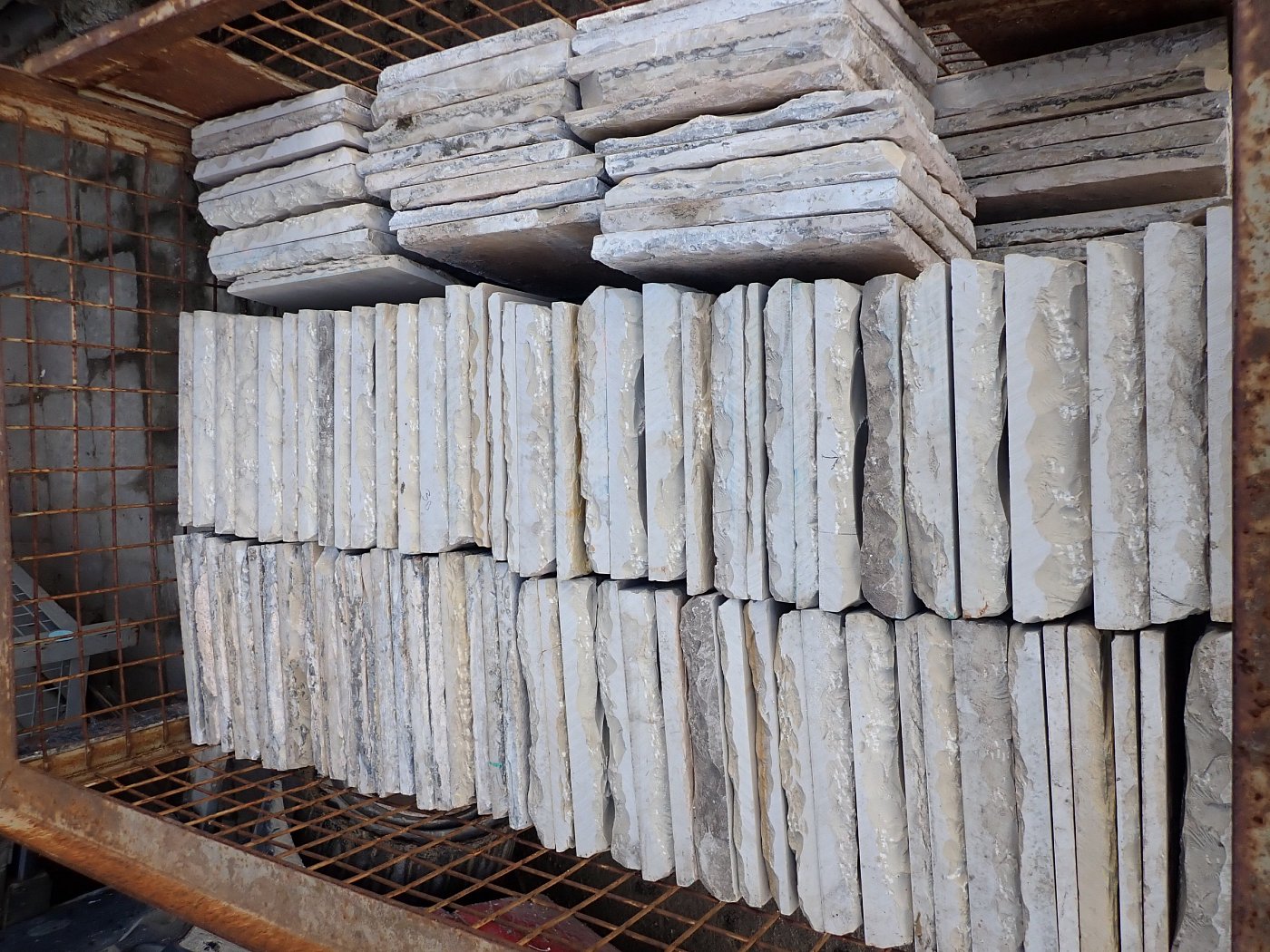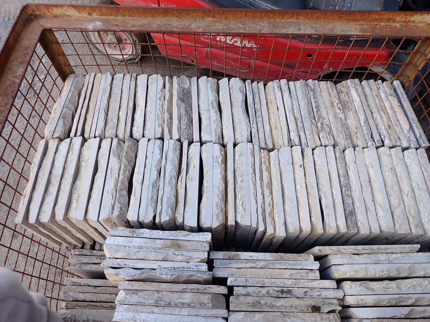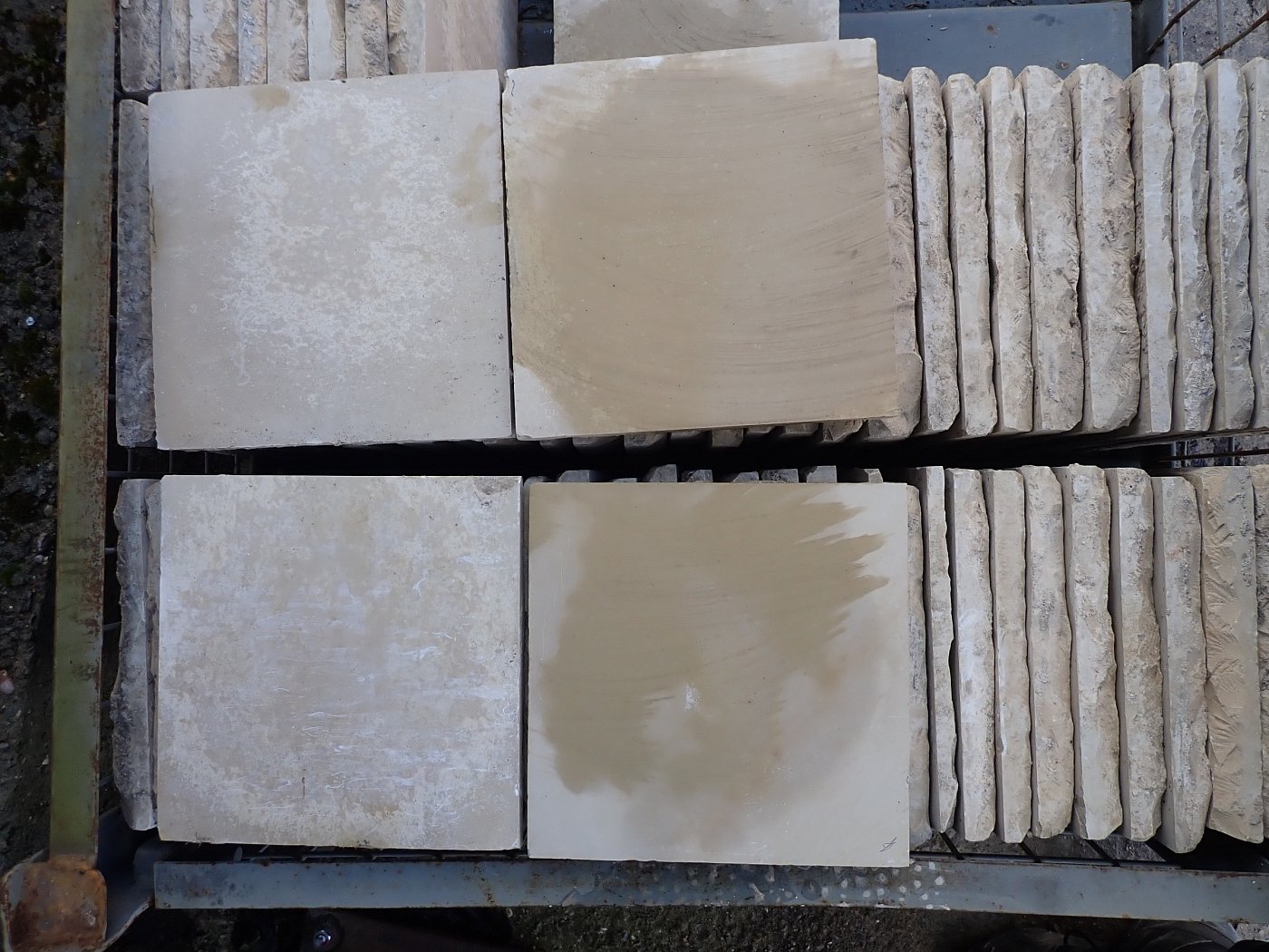 Solnhofer Bodenplatten mit gesägten Kanten.