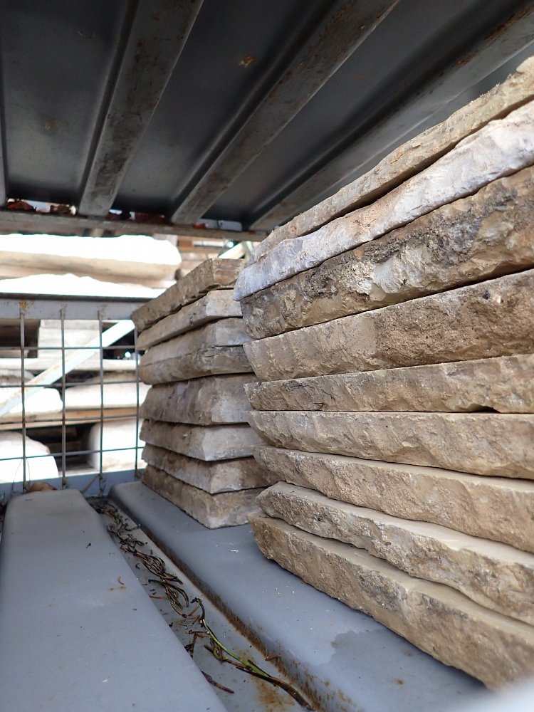 Solnhofer Bodenplatten mit handbehauenen Kanten.