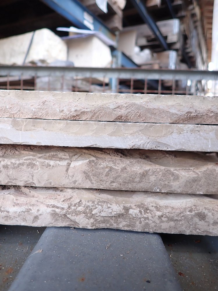 Solnhofer Bodenplatten mit handbehauenen Kanten.