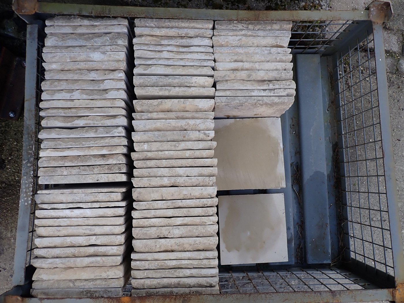 Solnhofer Bodenplatten mit geschnittenen Kanten.