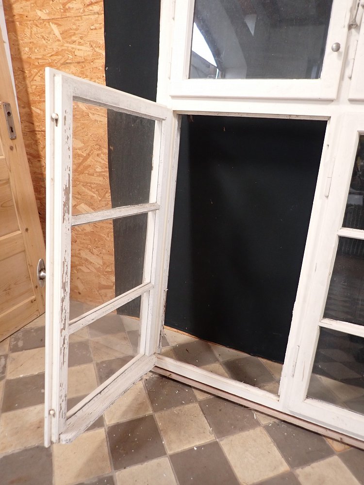 Das Holzfenster besitzt drei Flügel darunter ein Doppelflügel und ein Einzelflügel. Auch bei den Oberlichtern ist es ein doppelter Flügel und ein Einzelner. Zwischen den Doppelflügeln befindet sich ein gemeinsamer Griff für beide Flügel zum Schließen. Die Fenster lassen sich alle nur ganz öffnen.