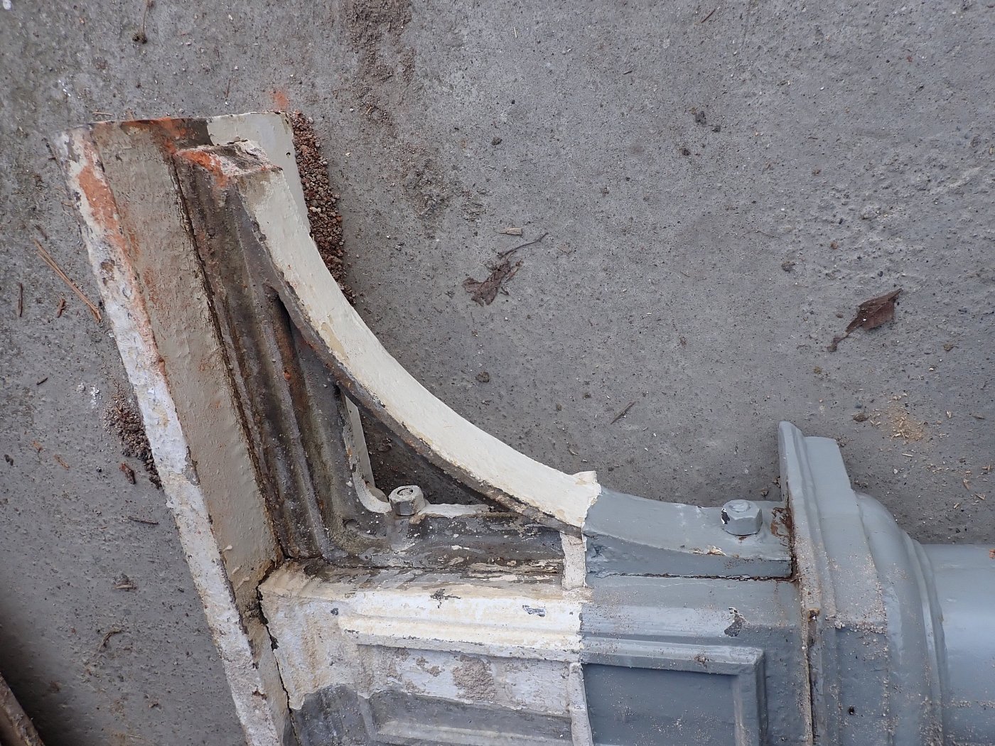 DetailansichtGusssäule - schlicht und schlank. Mehr gibt es dazu eigentlich nicht zu sagen. Leider hat die Säule keinen Sockel und muss bei einem Wiedereinbau einbetoniert...