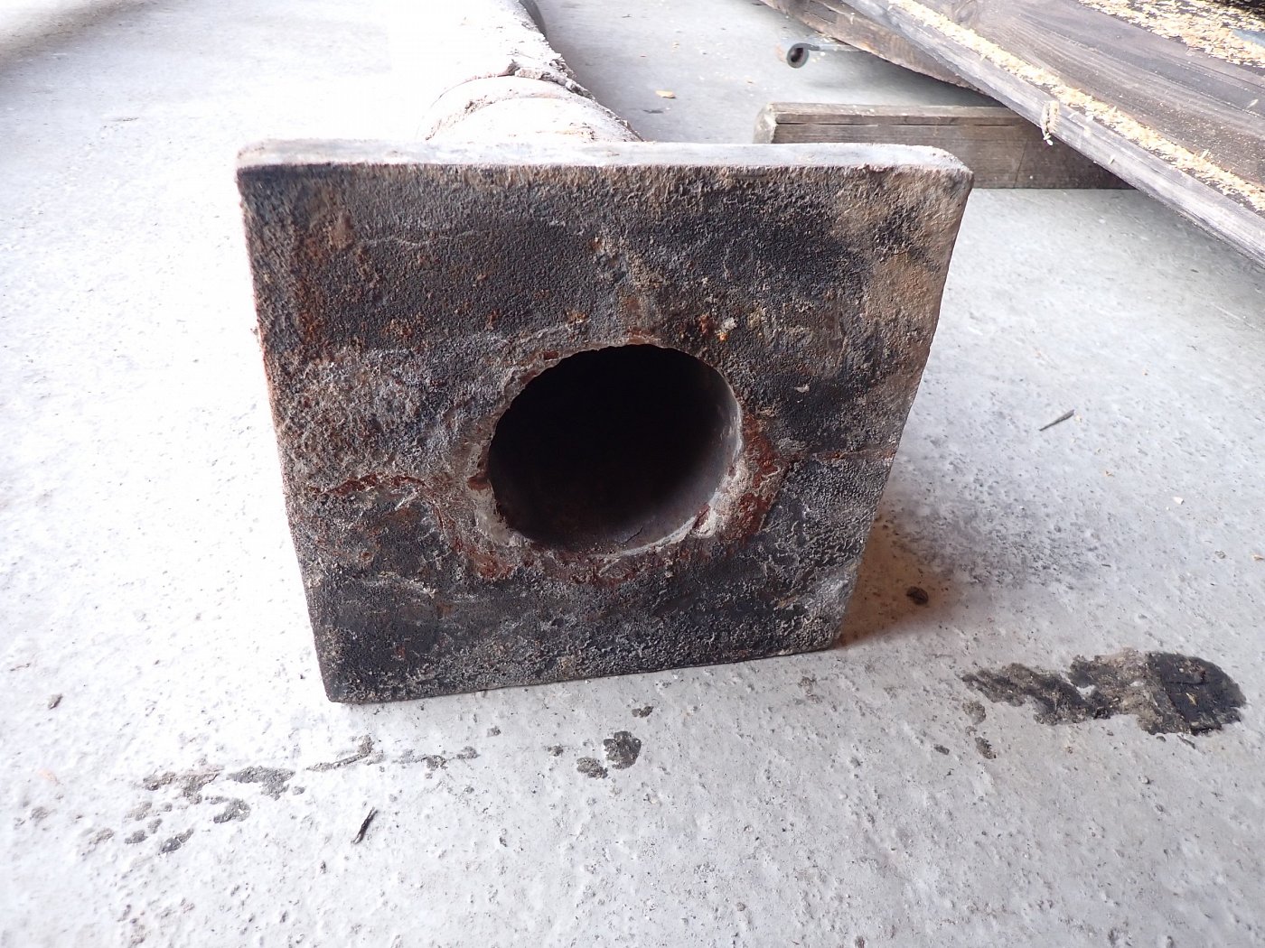 DetailansichtEigentlich eine schöne Holzsäule aus Eiche, wenn sie nicht als "Nagelbaumstamm" benützt worden wäre. (siehe Bild4) Wir haben die Säule bereits sandgestrahlt.