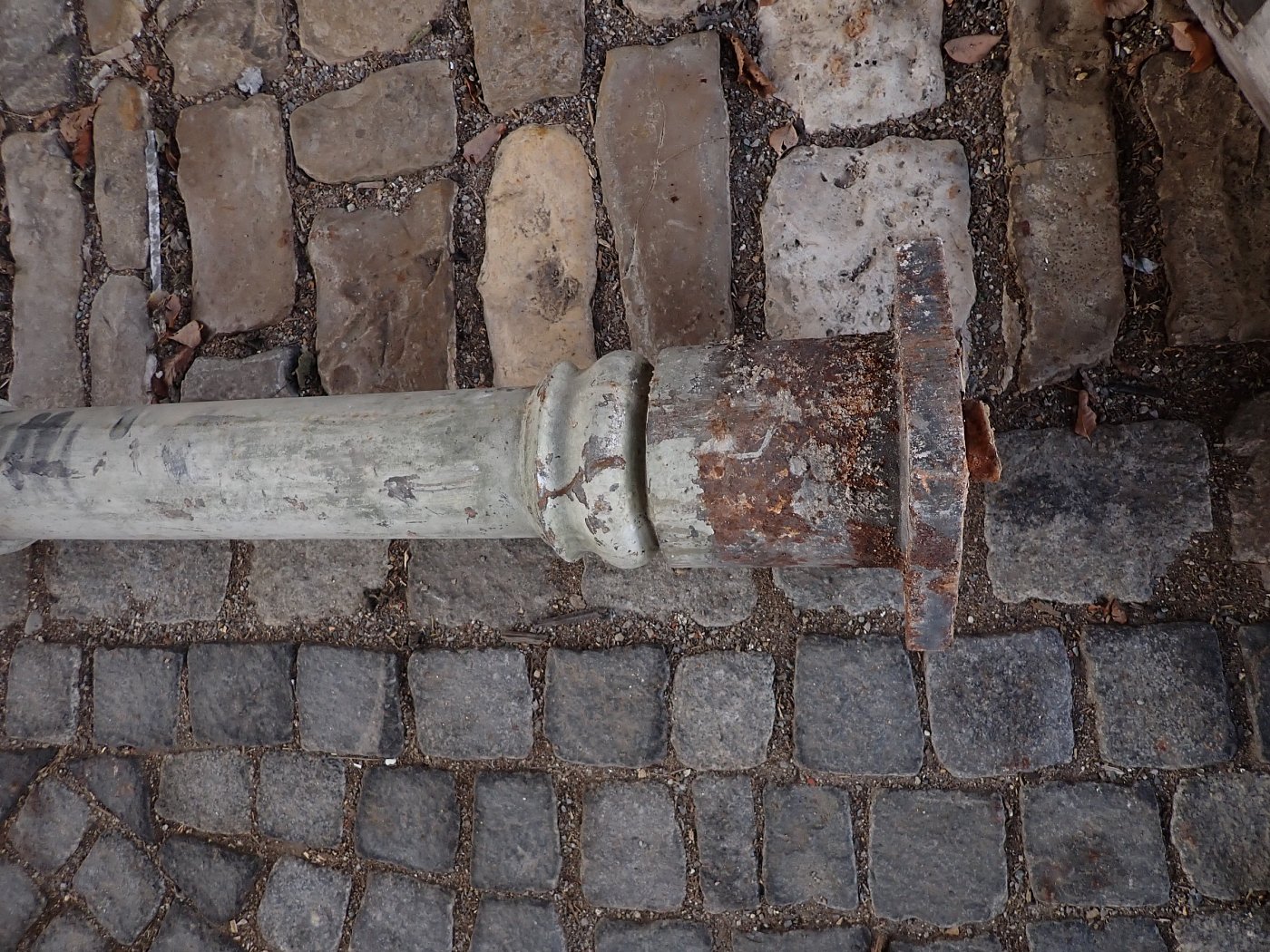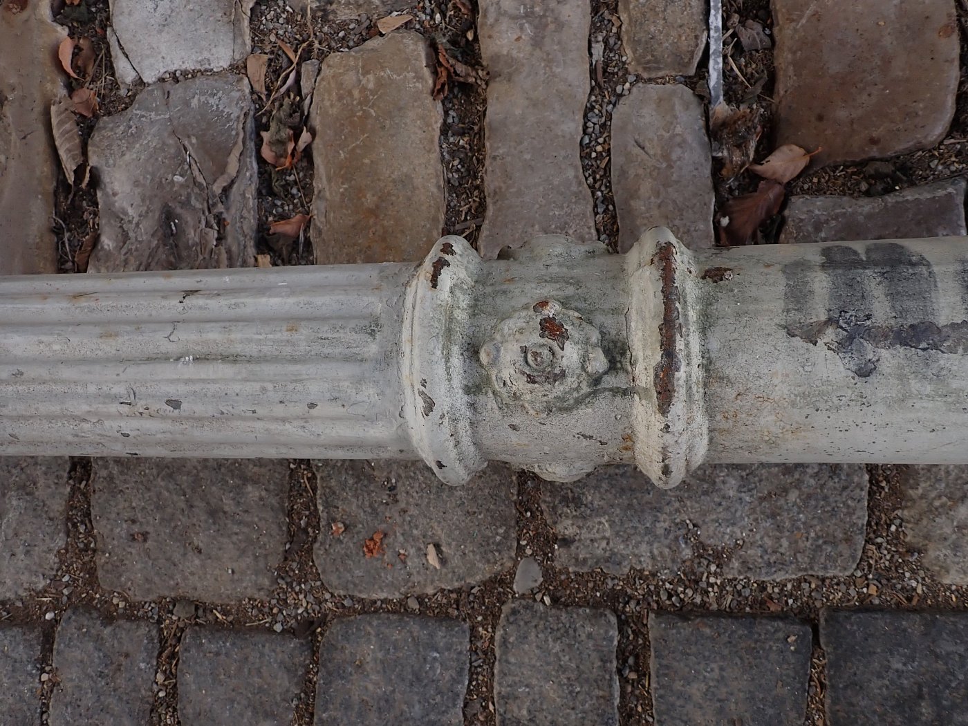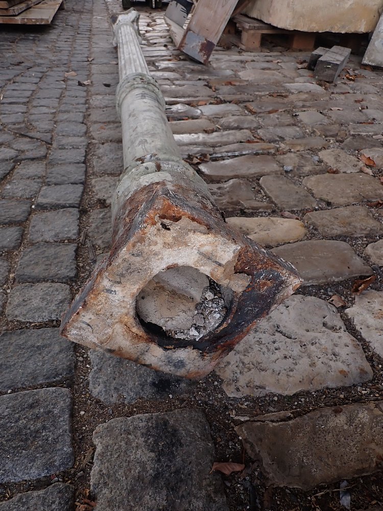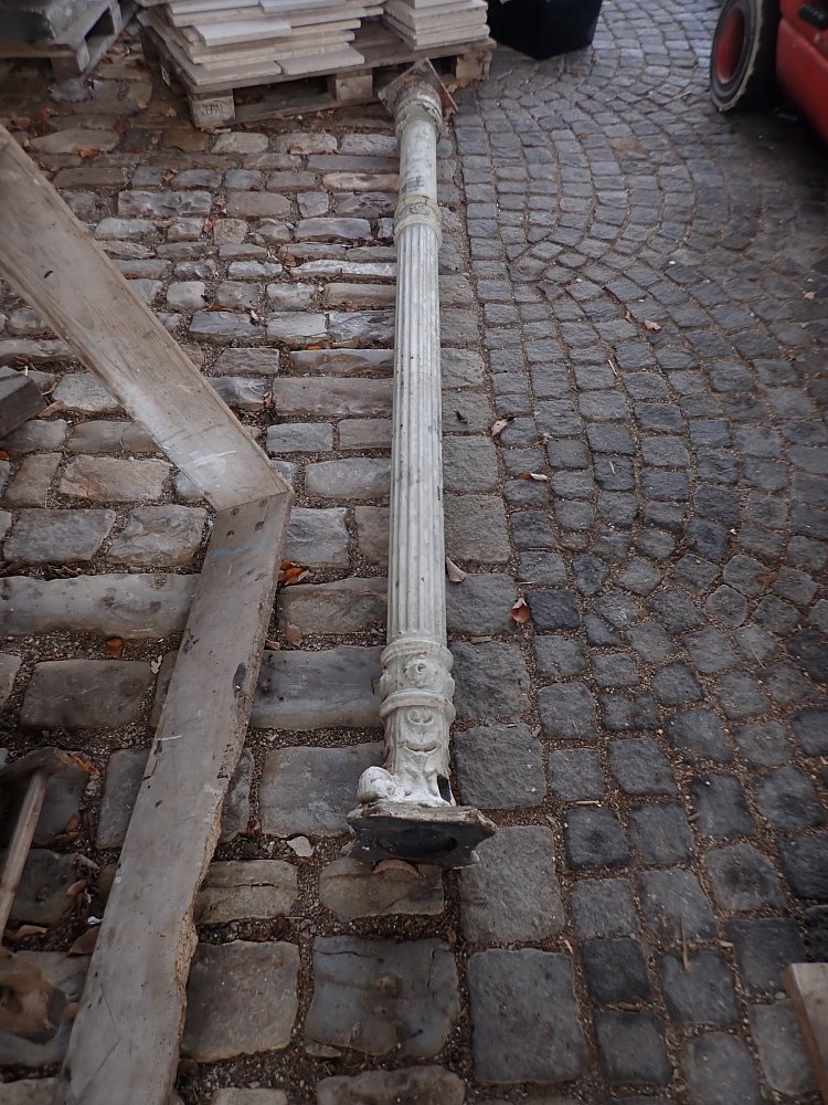 DetailansichtGusssäule - schlicht und schlank. Mehr gibt es dazu eigentlich nicht zu sagen. Leider hat die Säule keinen Sockel und muss bei einem Wiedereinbau einbetoniert...