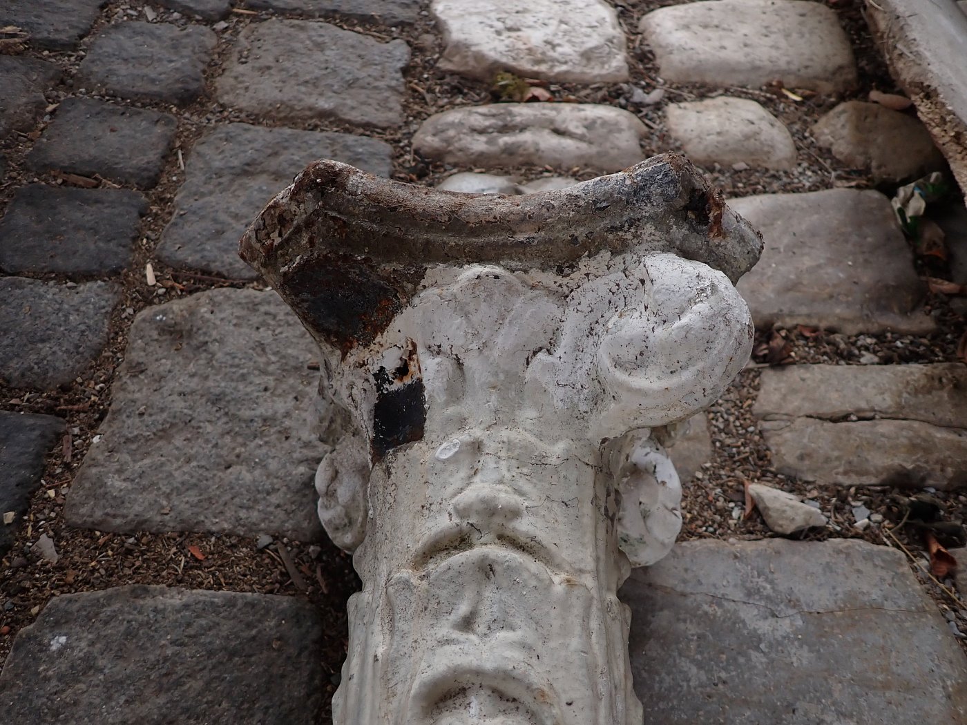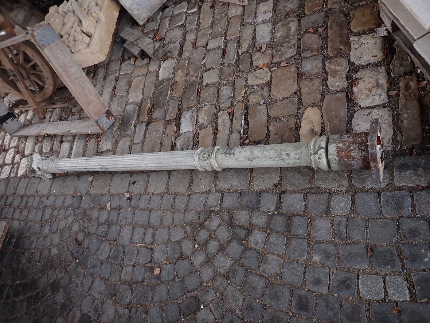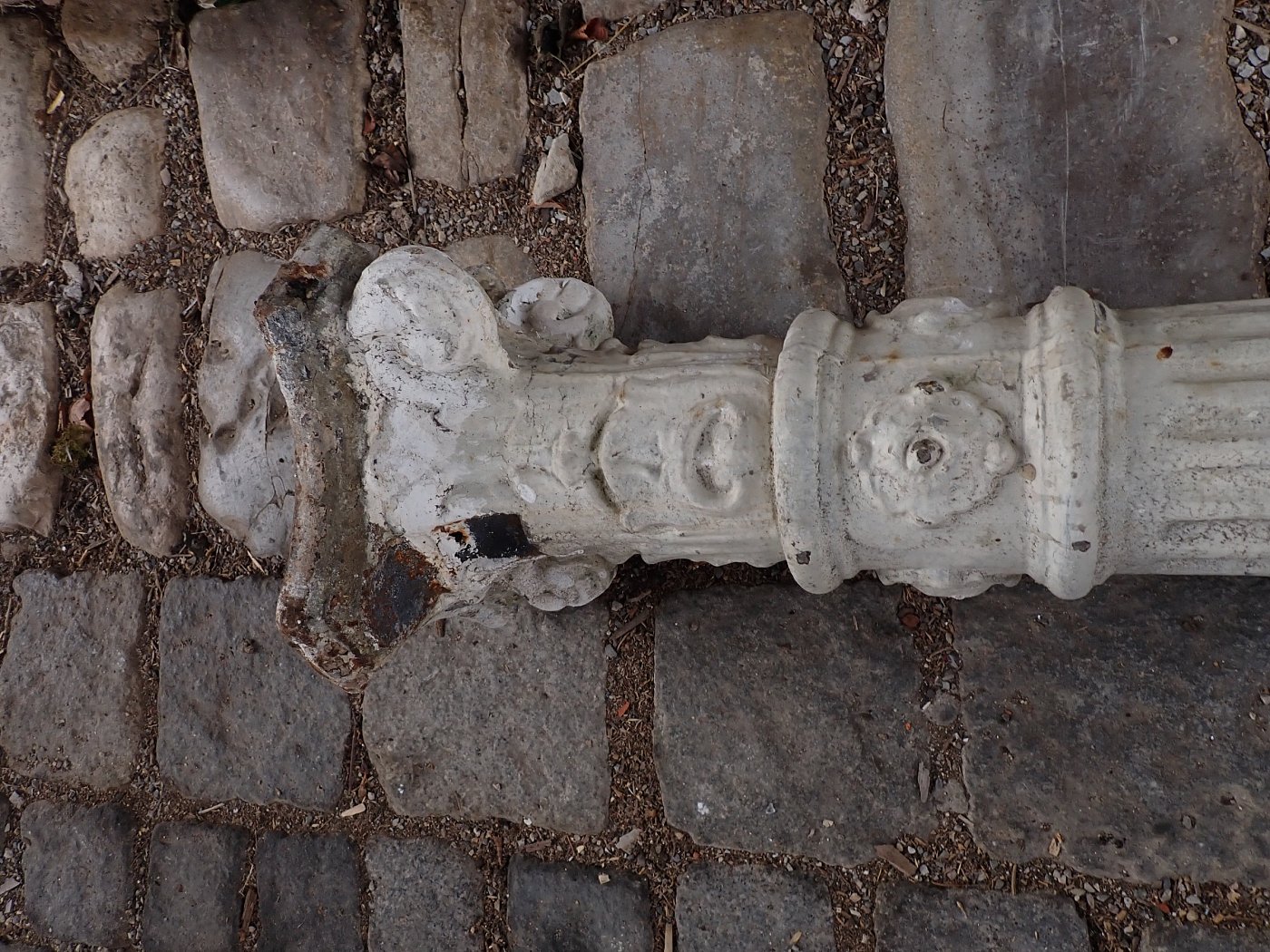 DetailansichtGusssäule - schlicht und schlank. Mehr gibt es dazu eigentlich nicht zu sagen. Leider hat die Säule keinen Sockel und muss bei einem Wiedereinbau einbetoniert...