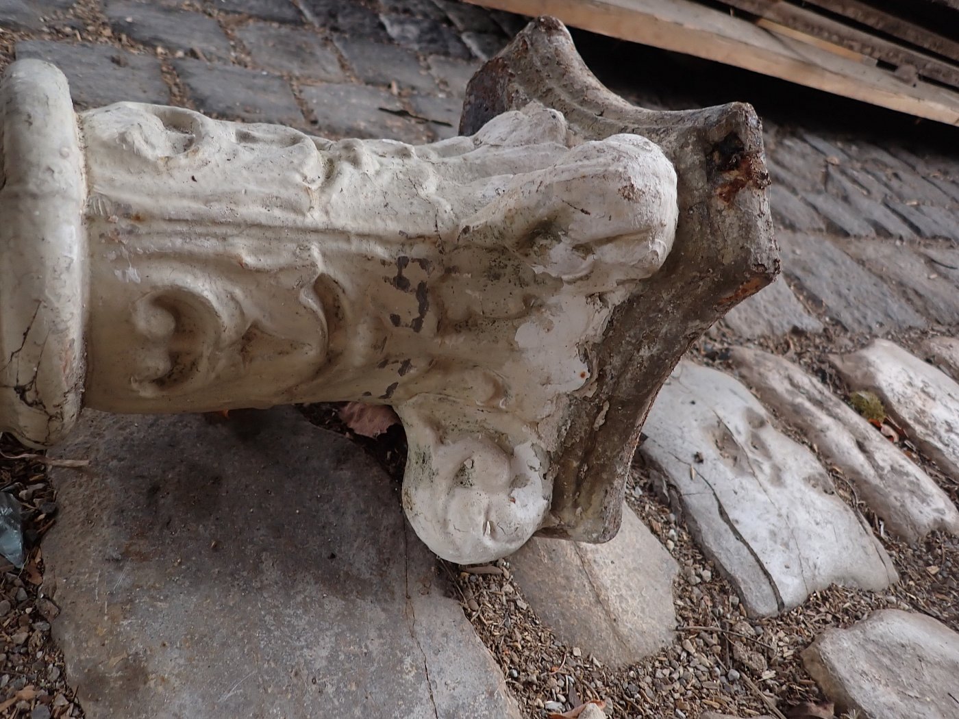 DetailansichtSäulenpaar aus hellem, sehr feinem Naturstein. Die beiden Säulen haben beim Ausbau leider etwas gelitten und die eine oder andere Schramme davon getragen. Ansonsten...