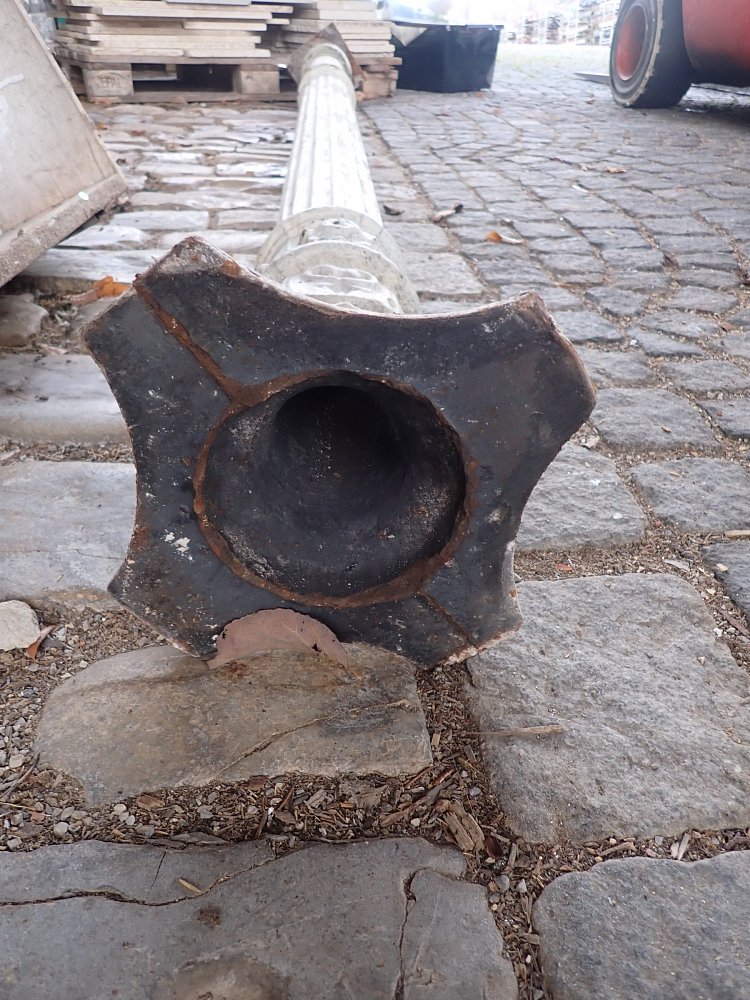 DetailansichtSchlichte, einzelne Gusssäule mit einer guten Länge von fast 2,80 m. Sie hat noch ein Verlängerungsstück, das vielleicht einmal zur Sicherung gedient hat, mit...