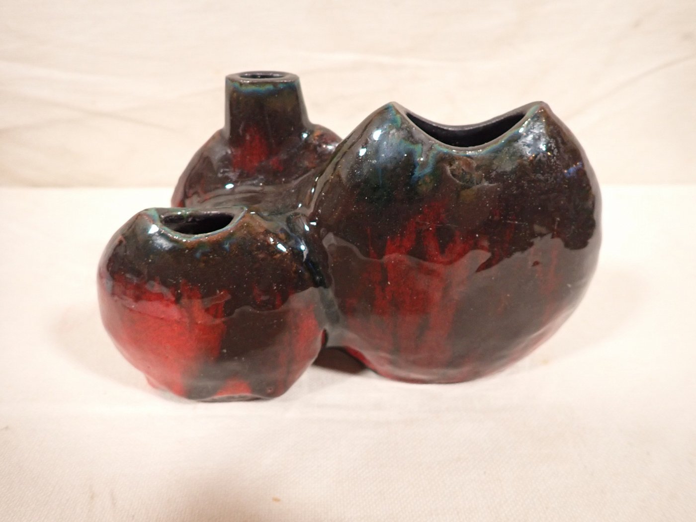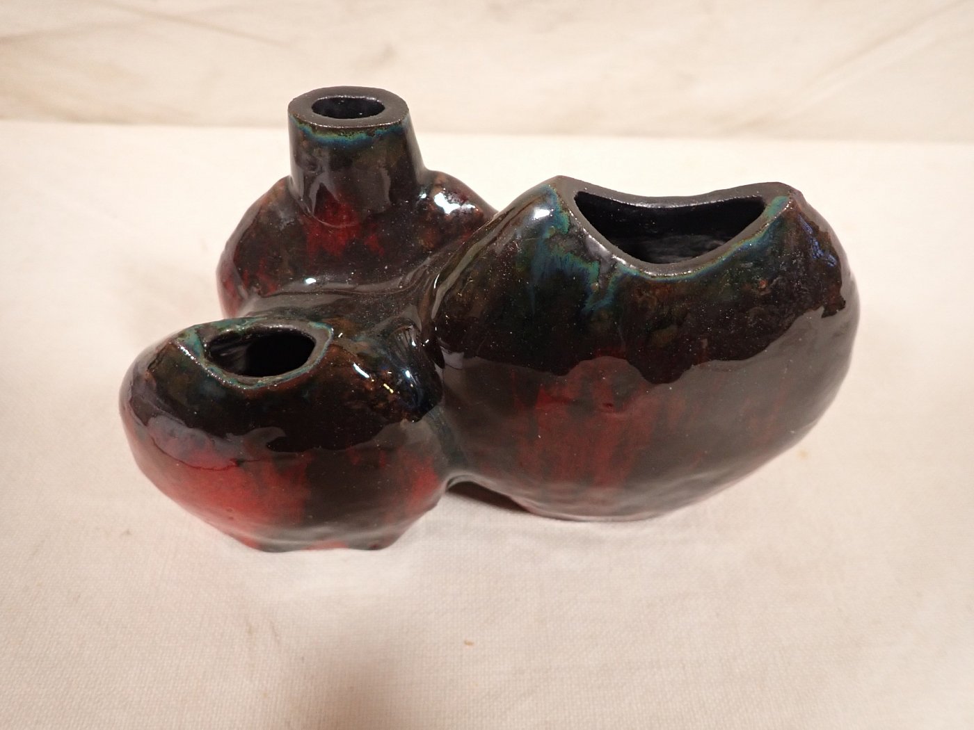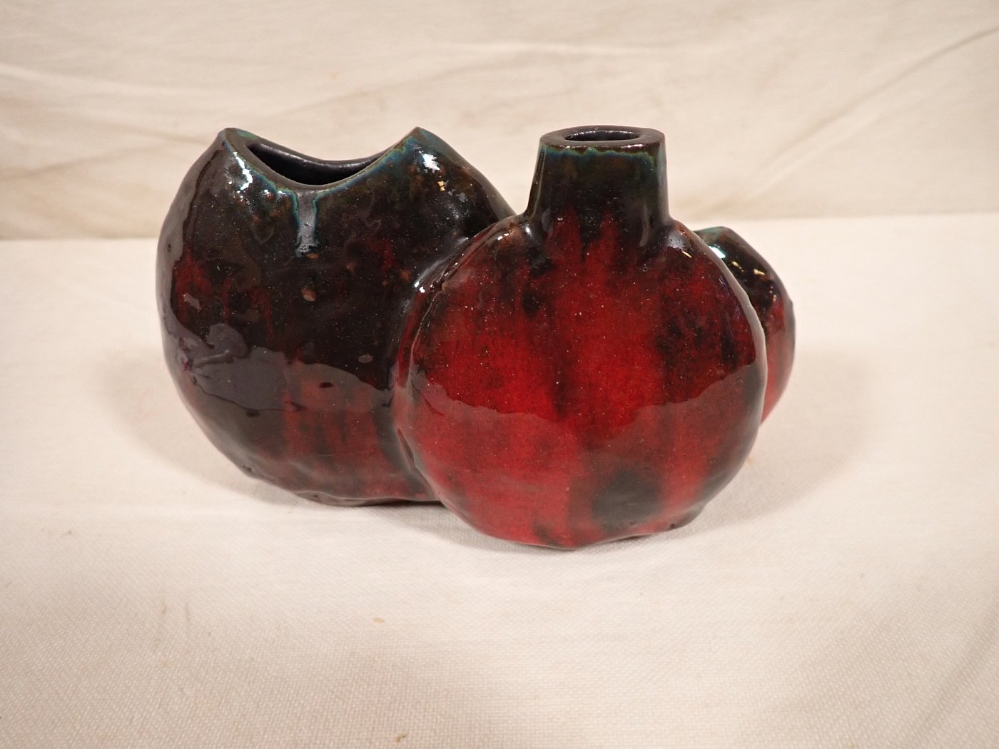 DetailansichtDie Vase besteht aus drei miteinander verbundenen Keramikvasen in verschiedenen Formen. Auf der unterseite der Vase ist eine Nummer vermerkt. Allerdings konnten...
