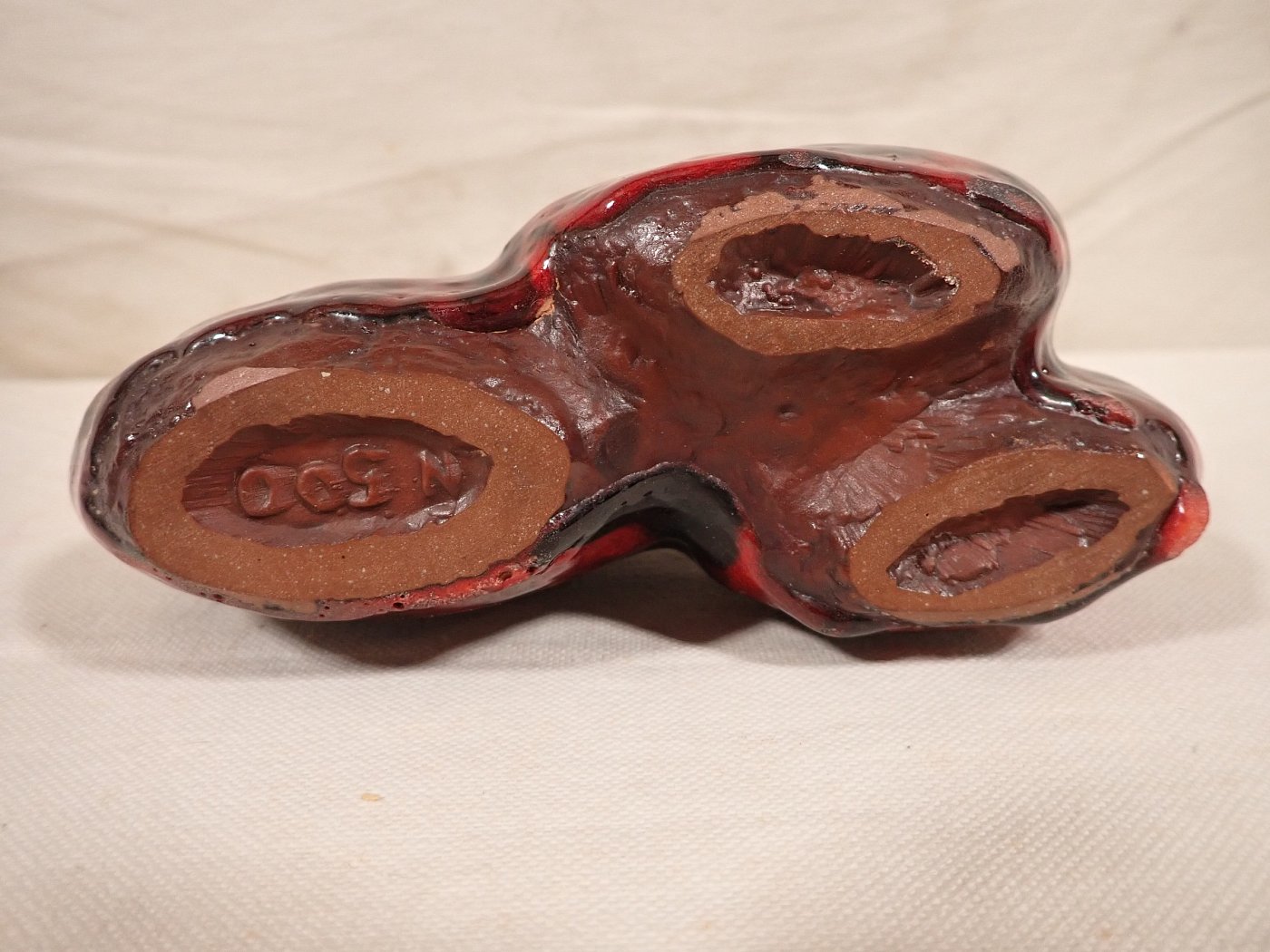 DetailansichtDie Vase besteht aus drei miteinander verbundenen Keramikvasen in verschiedenen Formen. Auf der unterseite der Vase ist eine Nummer vermerkt. Allerdings konnten wir kein Hersteller finden.