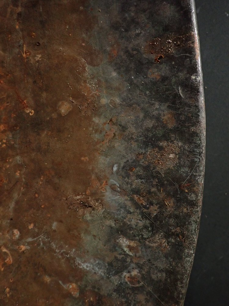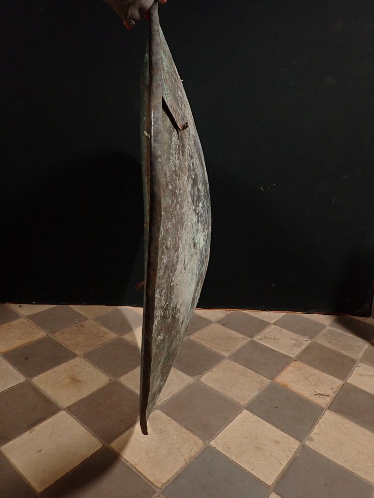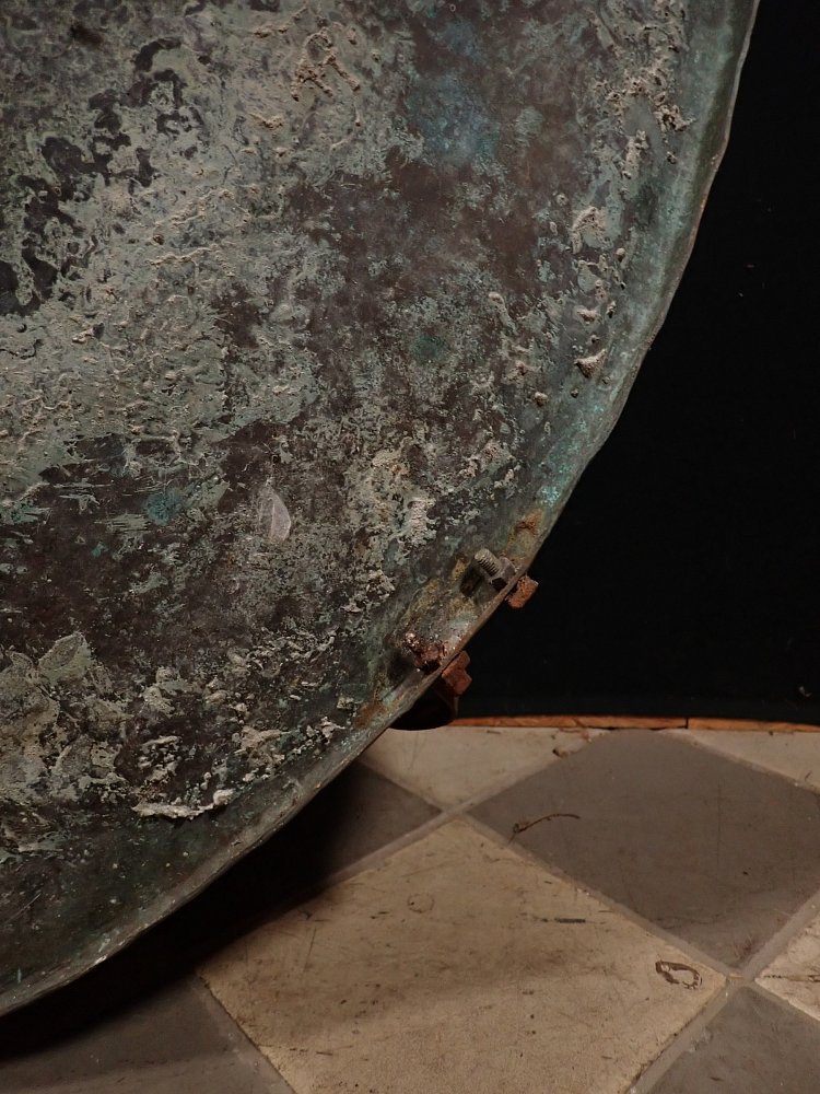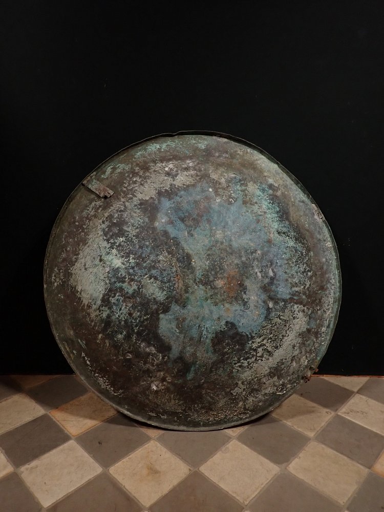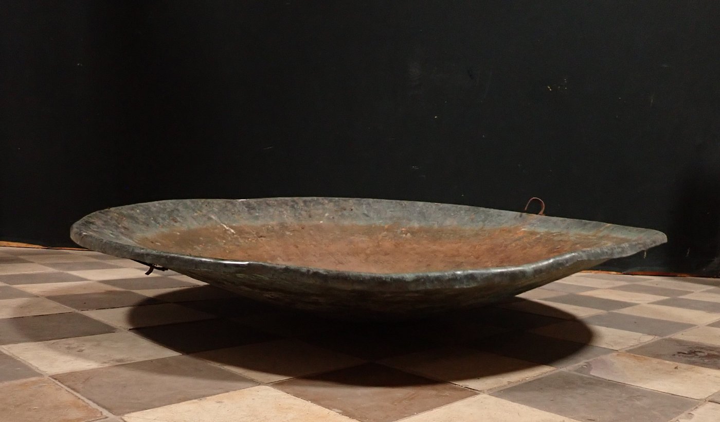 Die Kupferschale war im Garten des deutschen Keramikers, Malers und Bildhauers Schäffenacker verbaut. Im Laufe der Jahre hat die Schale durch Witterungseinflüsse eine wunderschöne Patina bekommen.