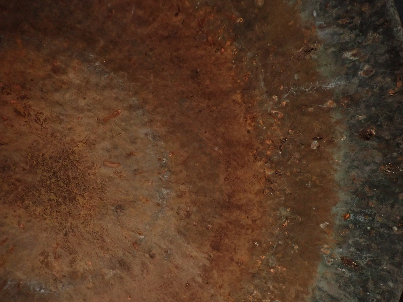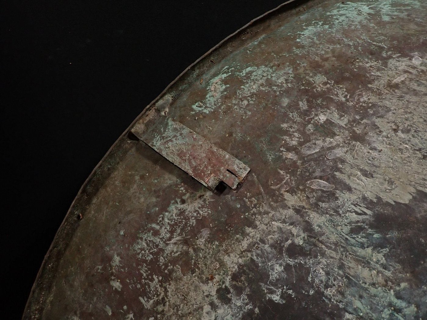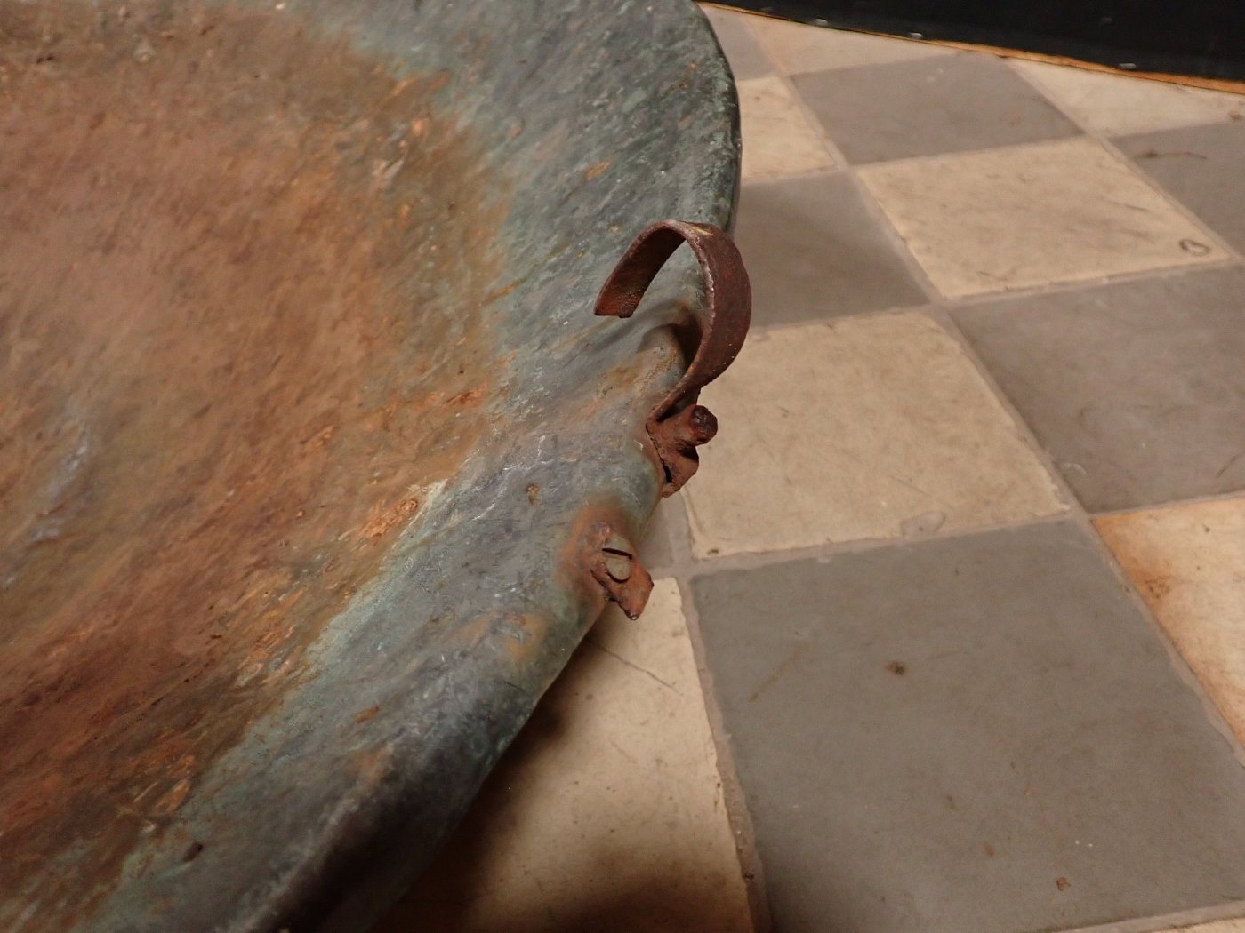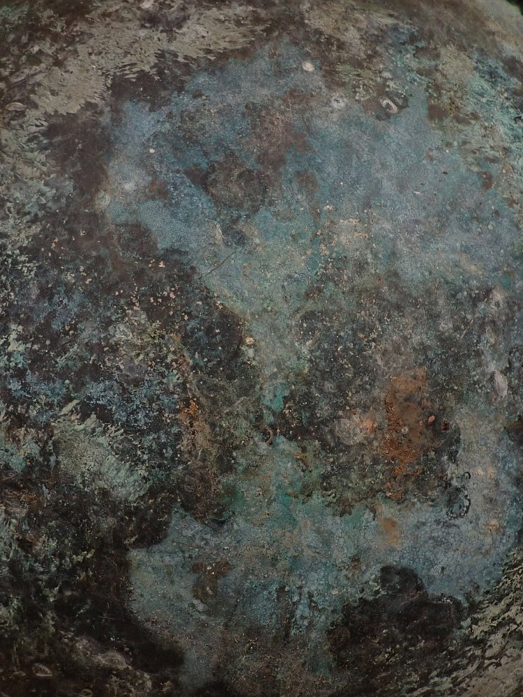 Die Kupferschale war im Garten des deutschen Keramikers, Malers und Bildhauers Schäffenacker verbaut. Im Laufe der Jahre hat die Schale durch Witterungseinflüsse eine wunderschöne Patina bekommen.