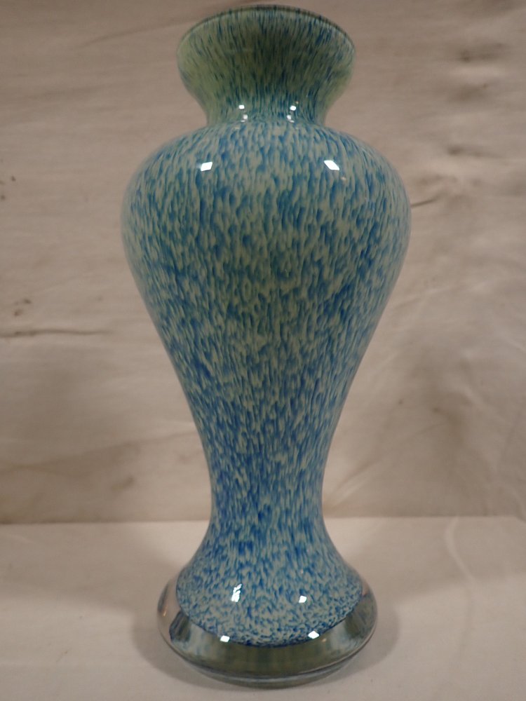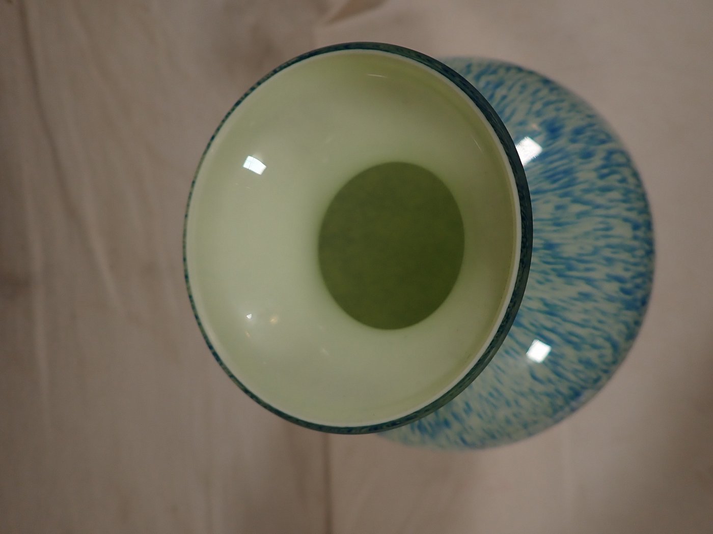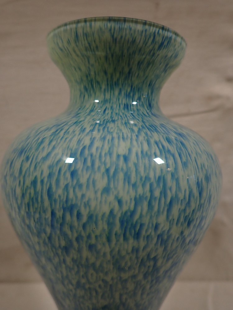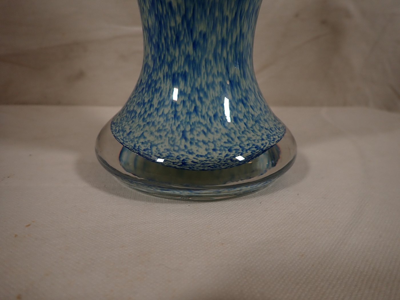 DetailansichtDie Mundgeblasene Vase hat einen blau-gräulichen Farbverlauf. Der Zustand der Vase ist gut.