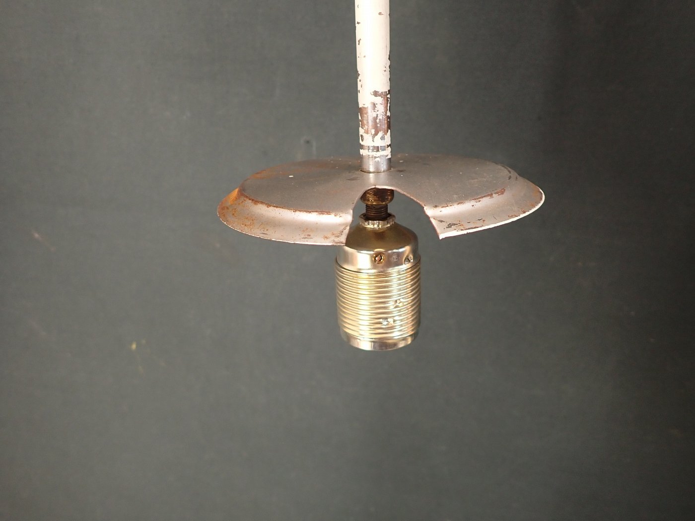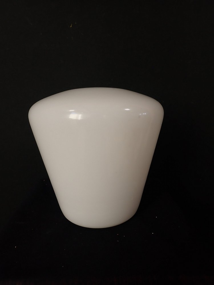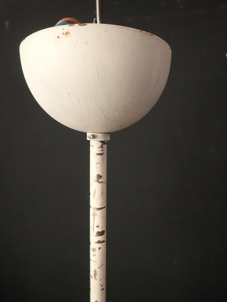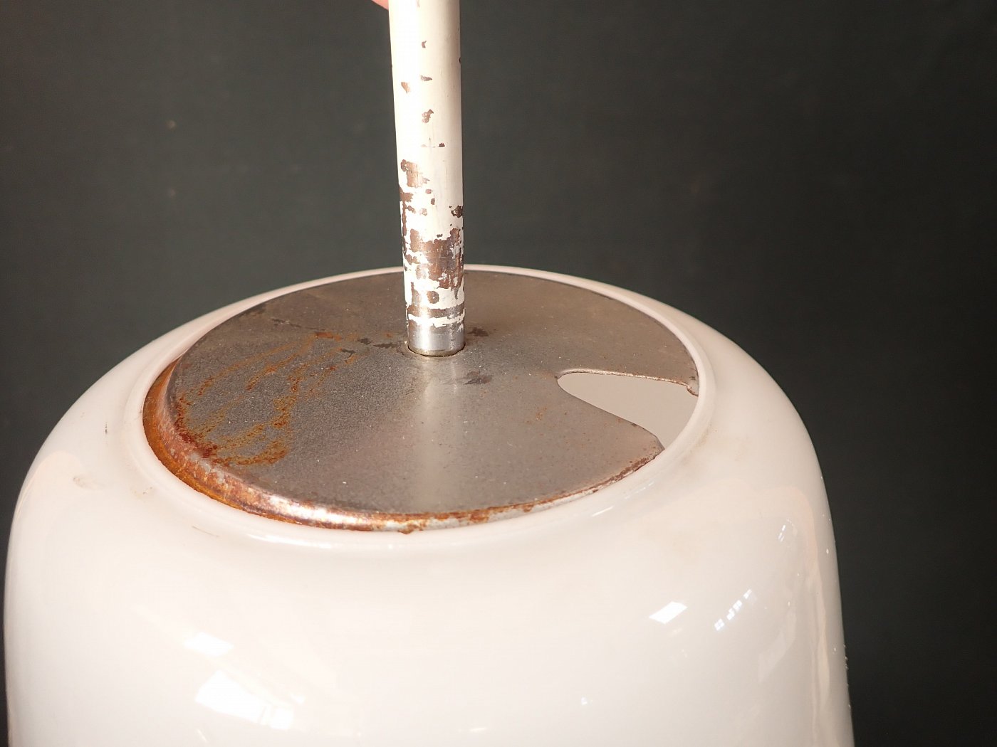 Klassische Hängeleuchte mit großem Glaskörper. Der Opalglaskörper ist mit einem kurzen Metallpendel ausgestattet, welches aktuell eine weiße Lackierung hat,...