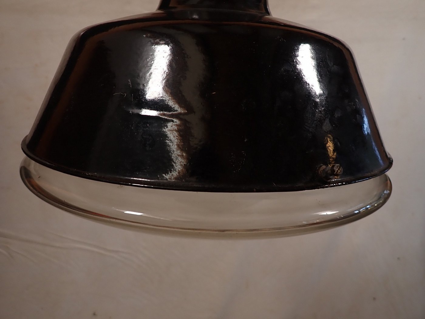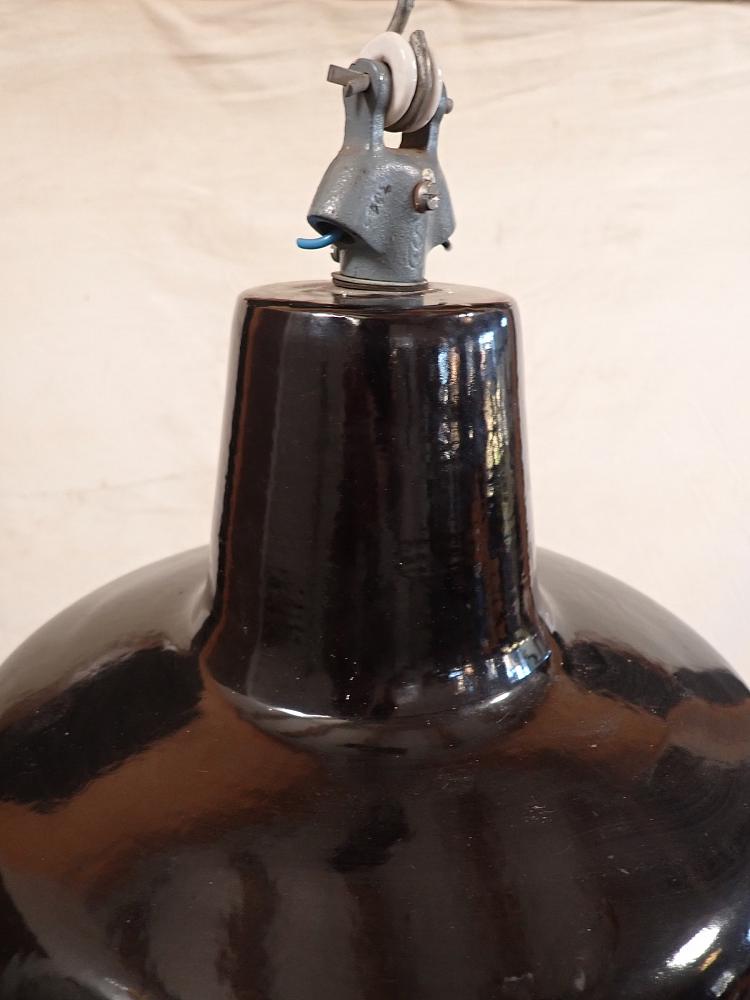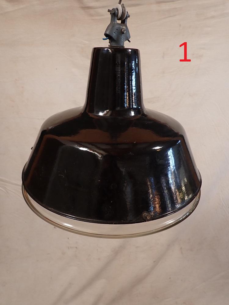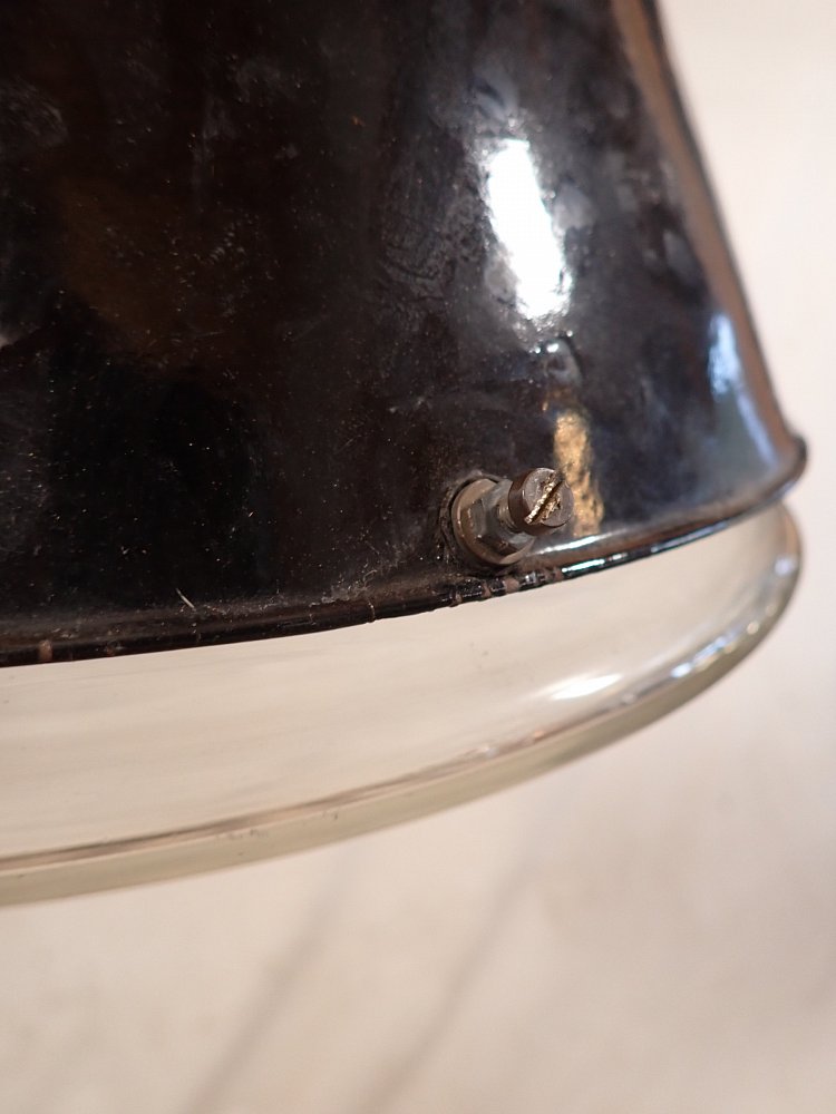 Die Oberteile aus Emaille sind öfter zu haben, aber die Untergläser sind das Besondere, das Fragile. Deshalb freuen wir uns sehr, mal wieder eine komplette, historische Industrieleuchte völlig intakt anbieten zu können. Hier heißt es zugreifen!