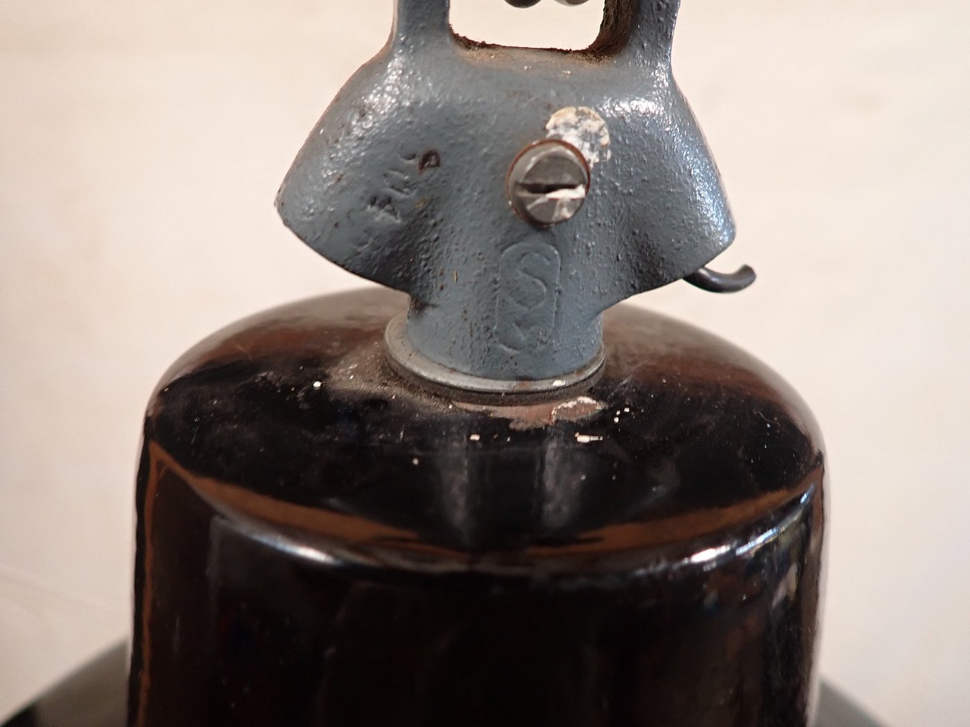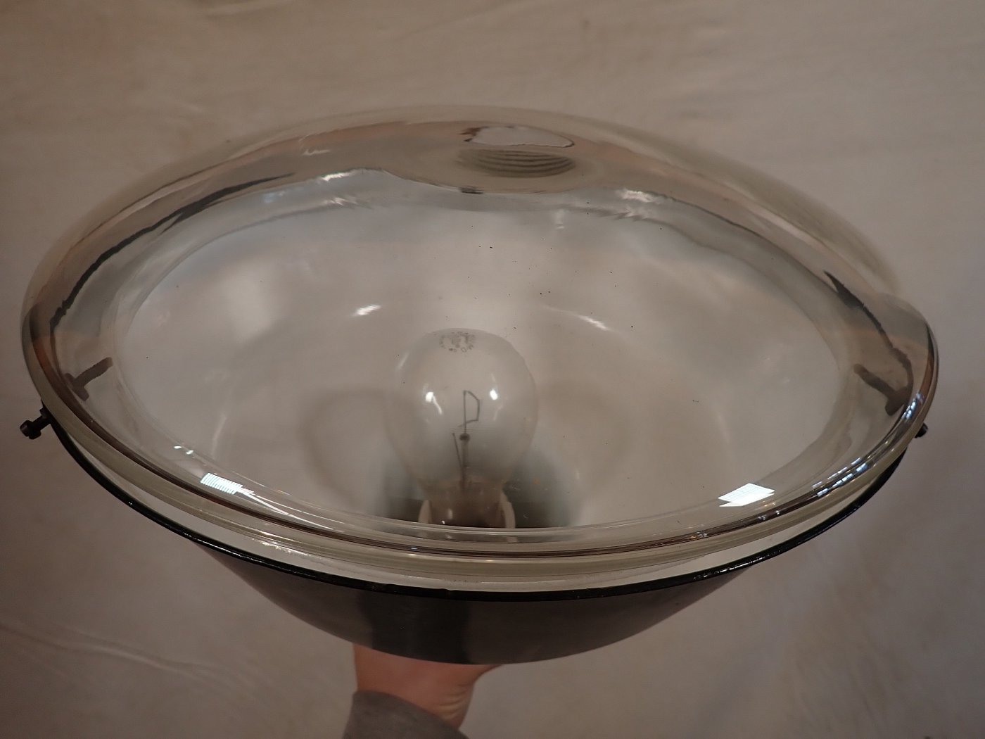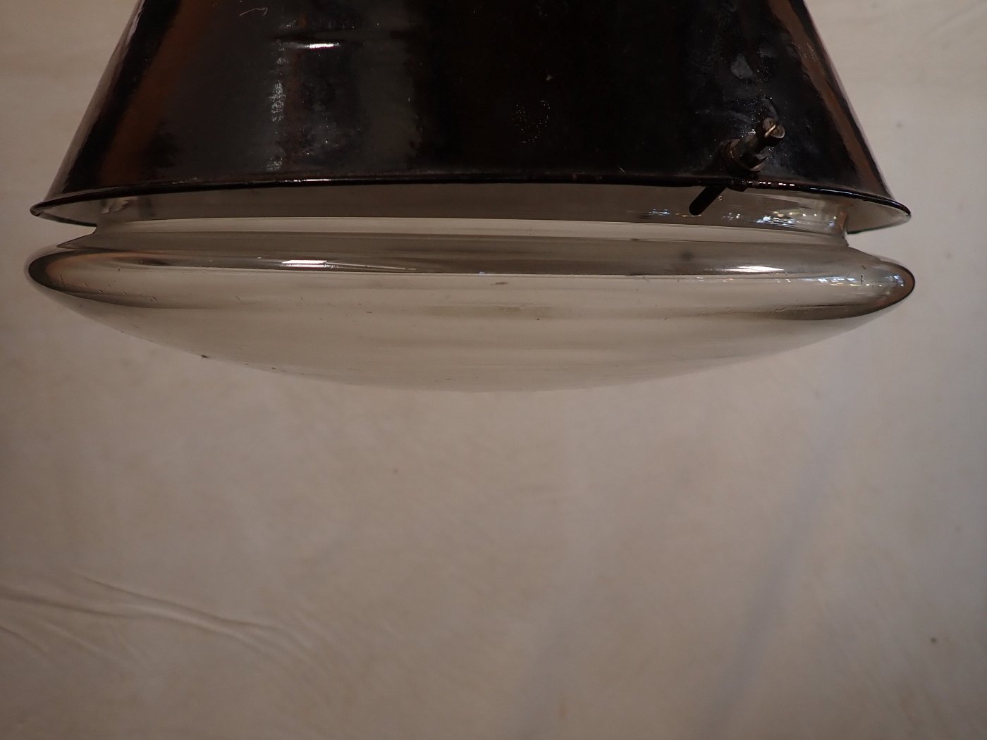 Die Oberteile aus Emaille sind öfter zu haben, aber die Untergläser sind das Besondere, das Fragile. Deshalb freuen wir uns sehr, mal wieder eine komplette, historische Industrieleuchte völlig intakt anbieten zu können. Hier heißt es zugreifen!